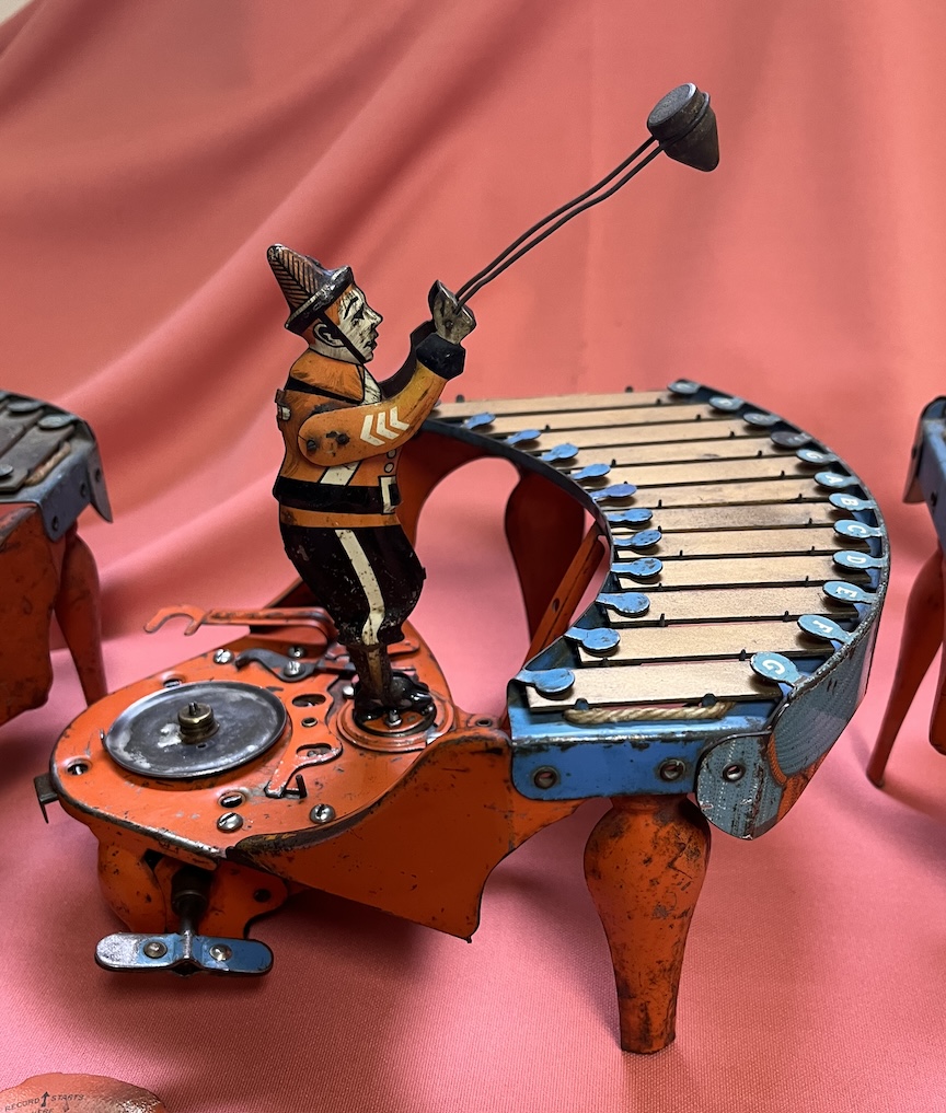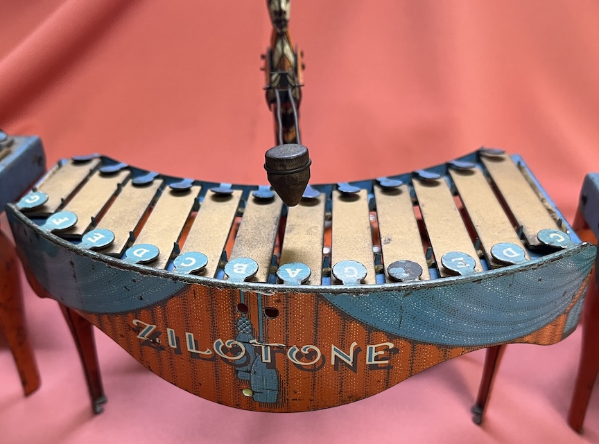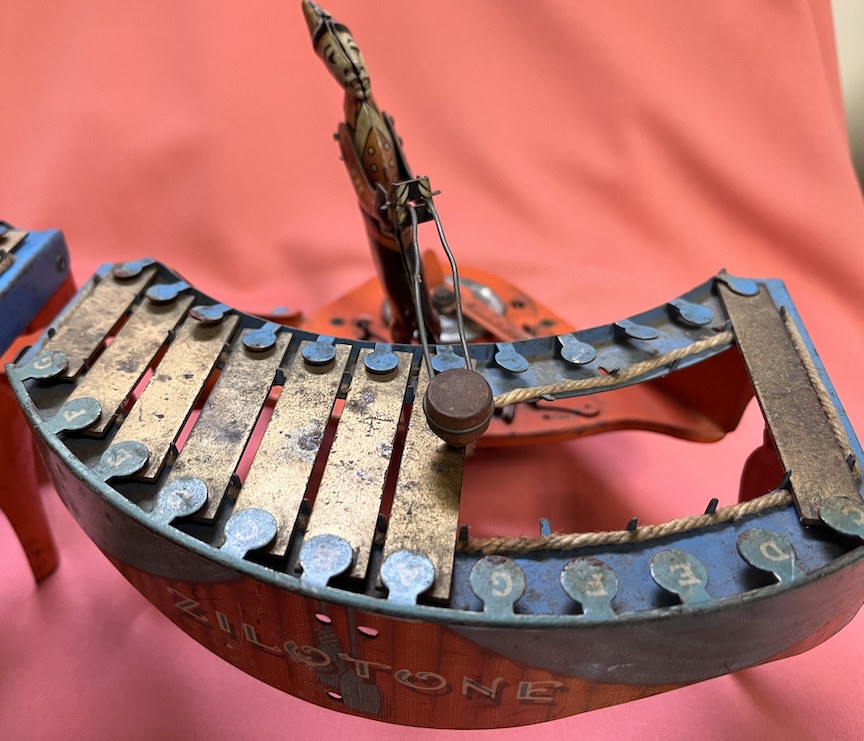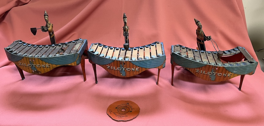 This sale is for three Zilotone children’s toys. It is not exactly a phonograph, but it shares many of the same characteristics. It is spring wound, plays a disc and plays music. The disc has two cams. One controls the up and down of the hammer and the other moves the clown to the correct note. There is one disc, “The sidewalks of New York”. One of the players is almost completely restored and the other two are basically parts machines, but restorable. Two have working springs. These are fun machines to get working and they actually play the tune quite well. I want $100 plus shipping for the set of three. Payment to be made by check. If interested, contact me at [email protected].