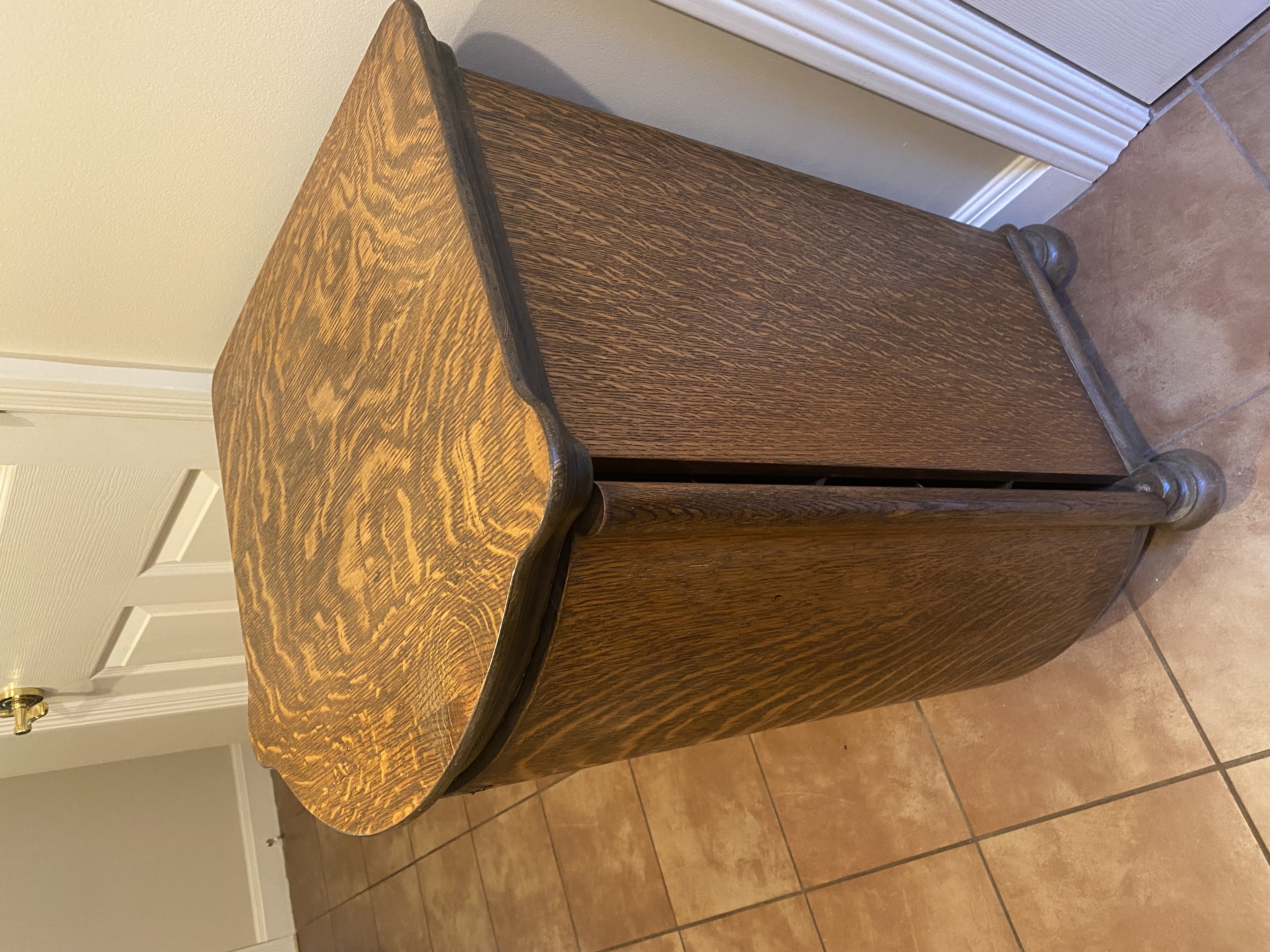 I found this cabinet locally in great condition but missing the insides. I just finished restoring the shelves and record holders as close as I can to what it would have been.