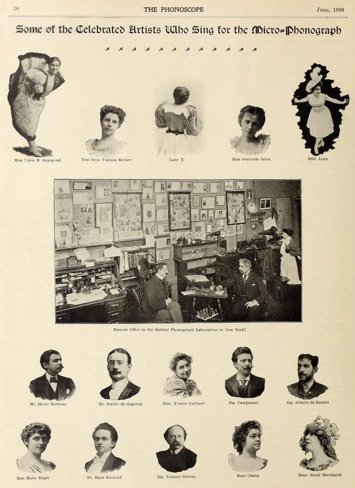 August 13, 1889: Gianni Bettini was granted a U.S. patent (No.409,003) for “Method of Recording and Reproducing Sounds.” The large diaphragm with multiple legs holding a stylus would result in the finest sound reproduction available to the public in the 1890s.