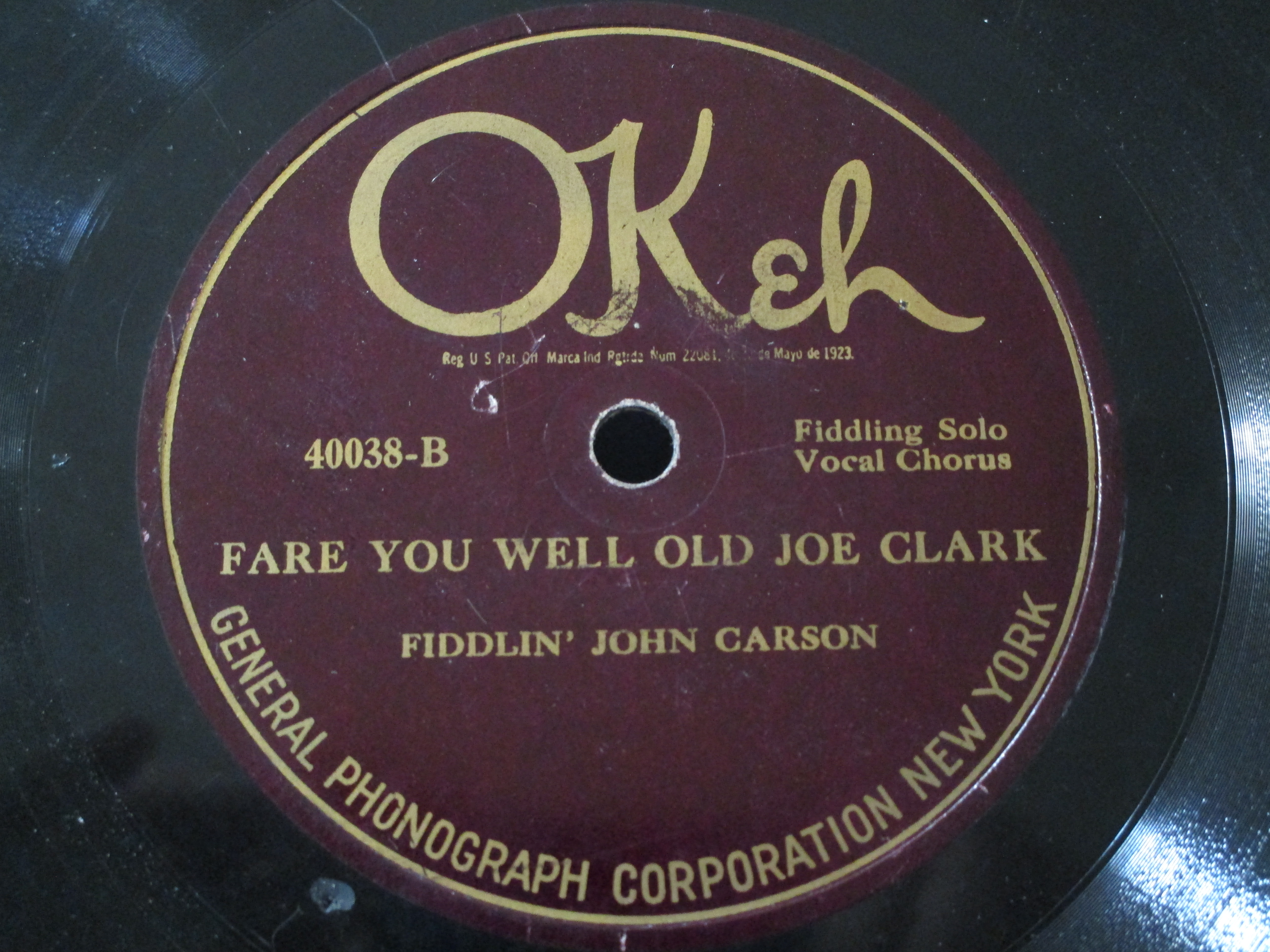 2. Okeh 40038 Fare You Well Old Joe Clark - Fiddlin John Carson V 30