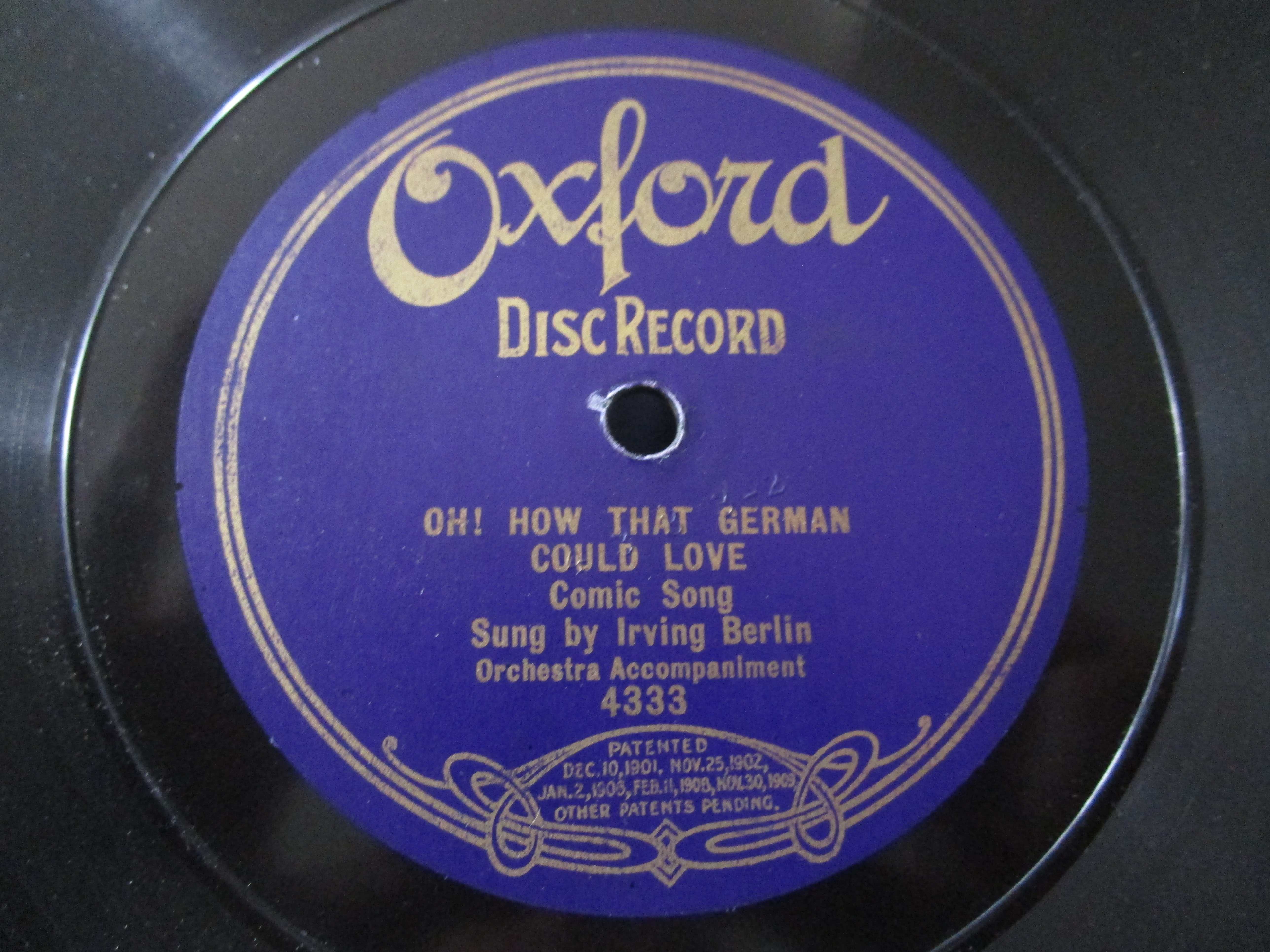 1. Oxford 4333 - Oh How That German Could Love - Sung by Irving Berlin (rare) E+ 50