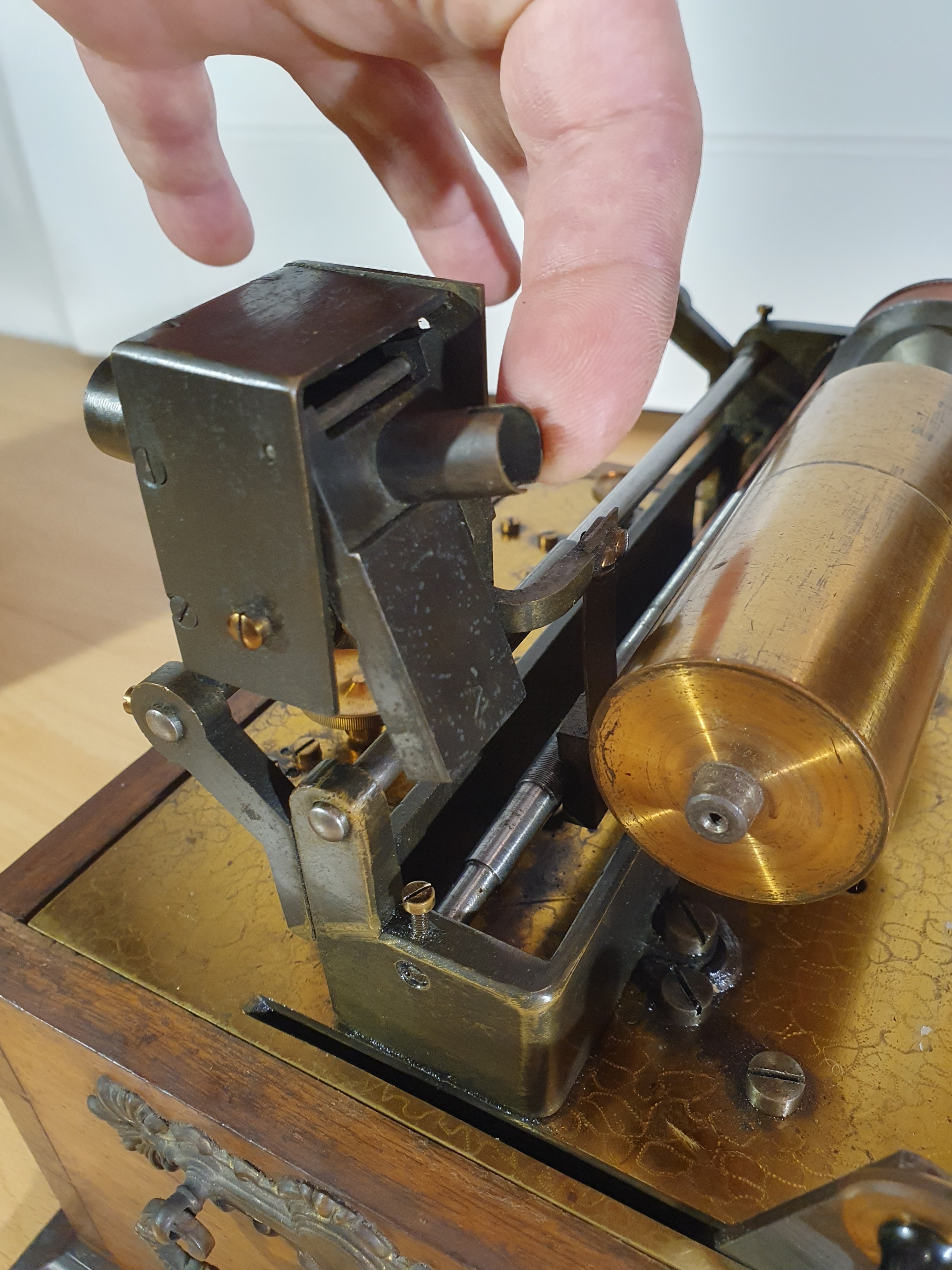 I agree. It can't be a mass production. Too much effort for a series. It is much more precise (needle bearings etc.) as any phonograph I saw. A clock maker would have worked like that.