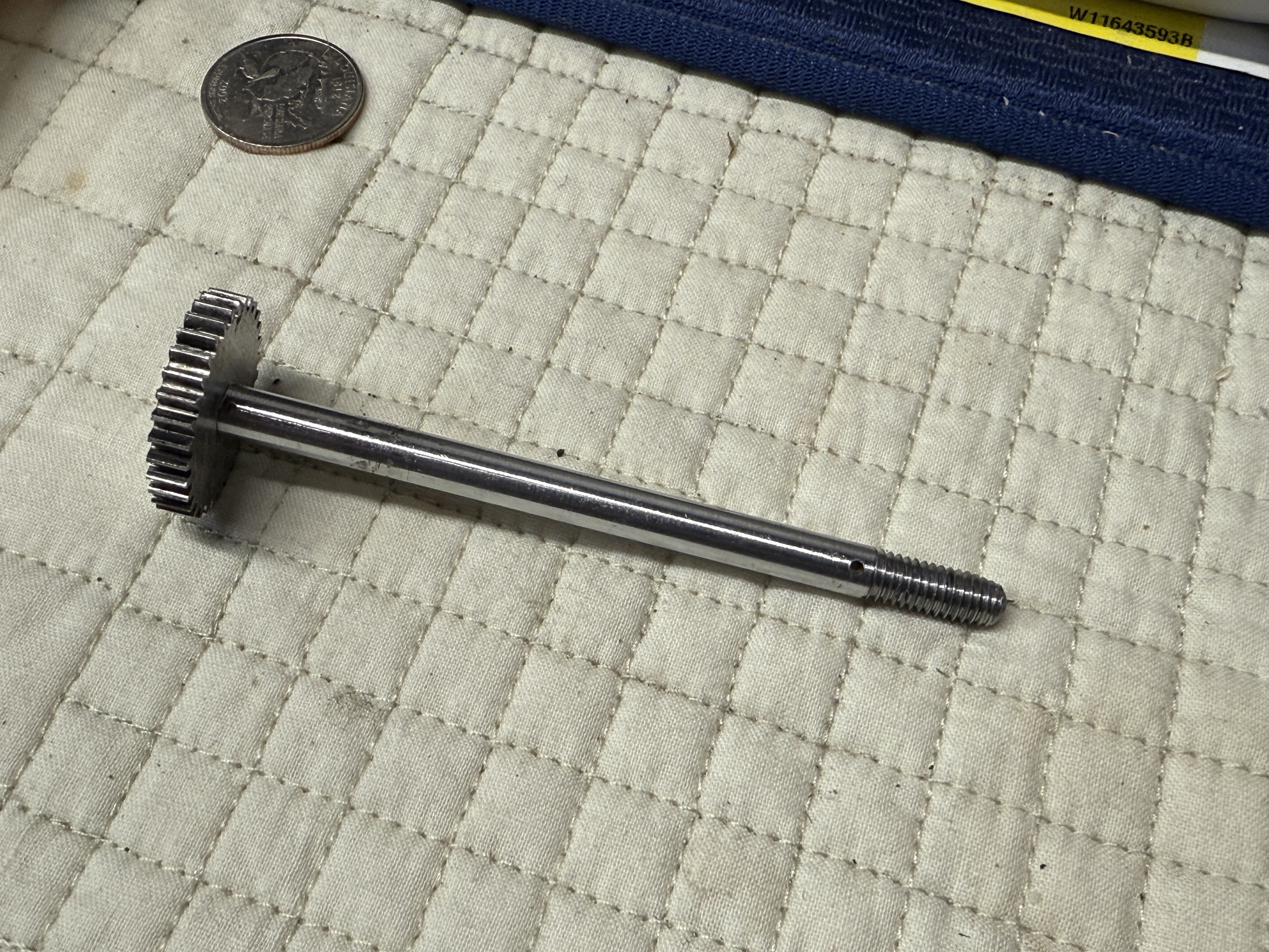 Does anyone have a replacement? I hope these photos help. I measured the shaft and it’s ¼” in diameter, approximately 3 to 3 ½” in length with gear attached.