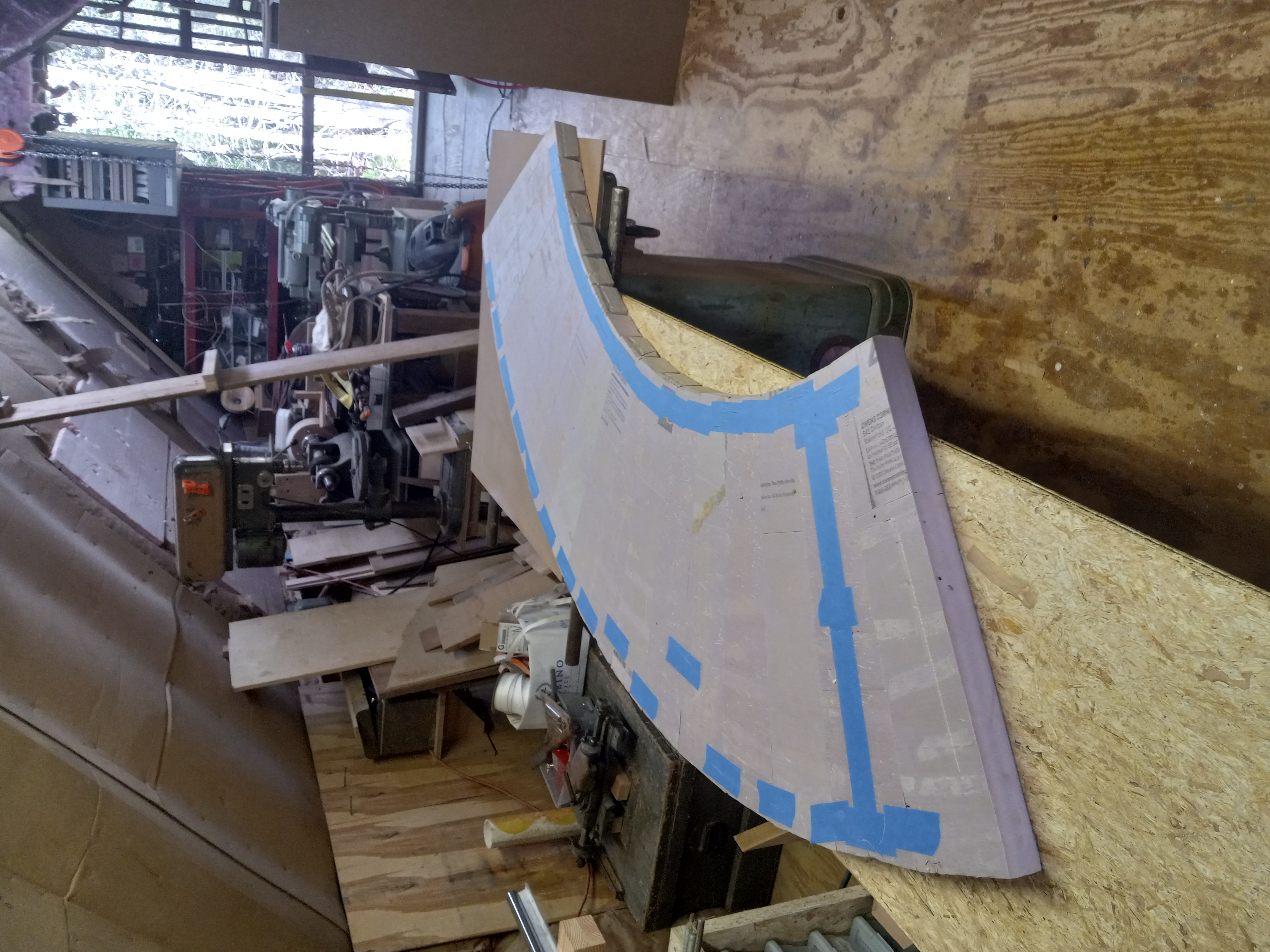 Moving along. The 24" sanding disc is specifically for sanding the 2 halves for uniformity and a nice curved surface which will be covered with ⅛" tempered Masonite. I plan to glue the 2 halves together before a final sanding.