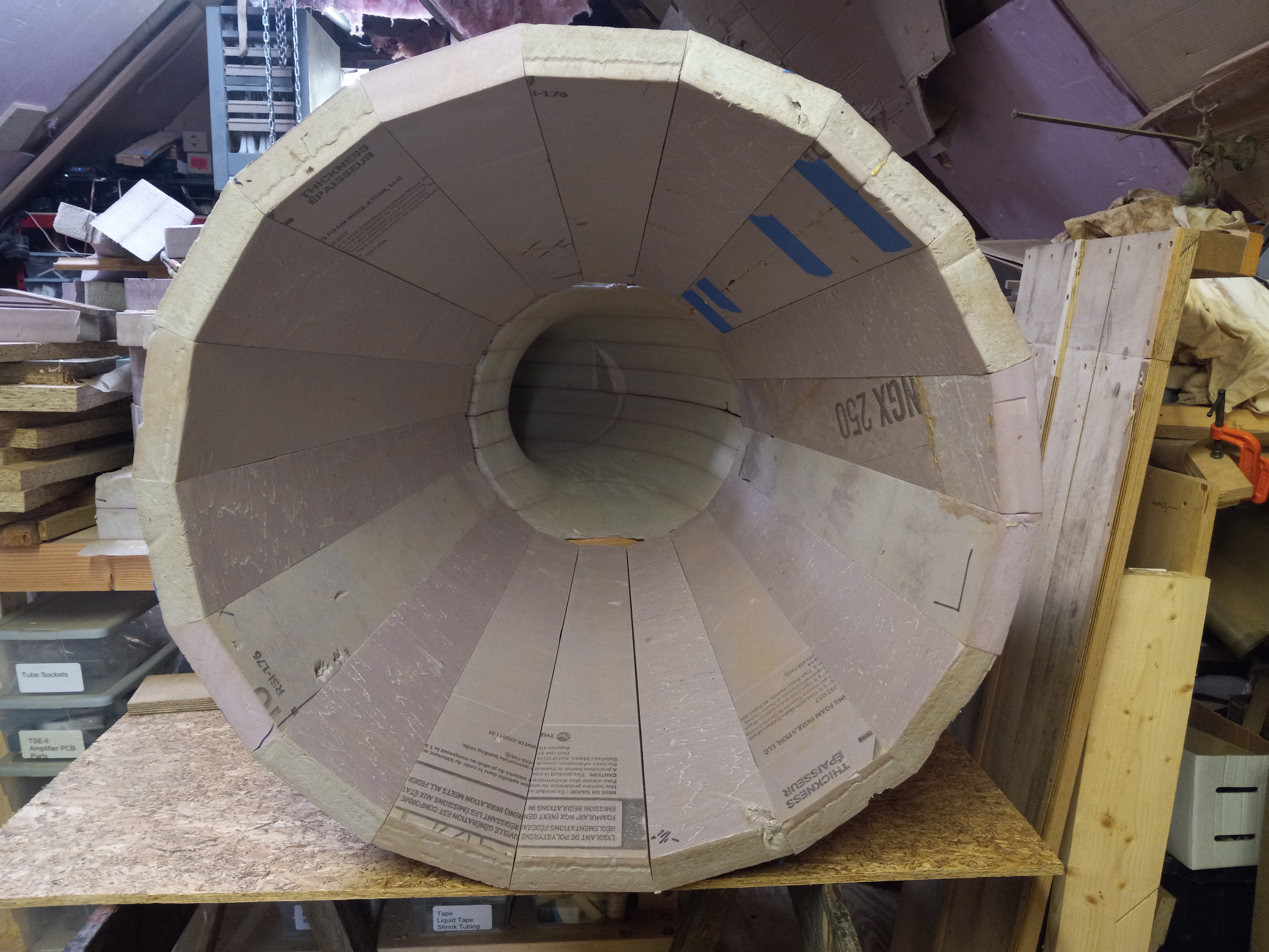 I've decided to move along on this project as I want to listen for a possible improvement in the sound. The extension will nearly complete the original output end of the transmission line, but will be about 24" short of that, and the original terminus dia. was 64" or 68" as I recall, and I'll have only 30". I think I read that 78RPM records do not play low enough to justify the additional TL 2' length and larger exit dia.