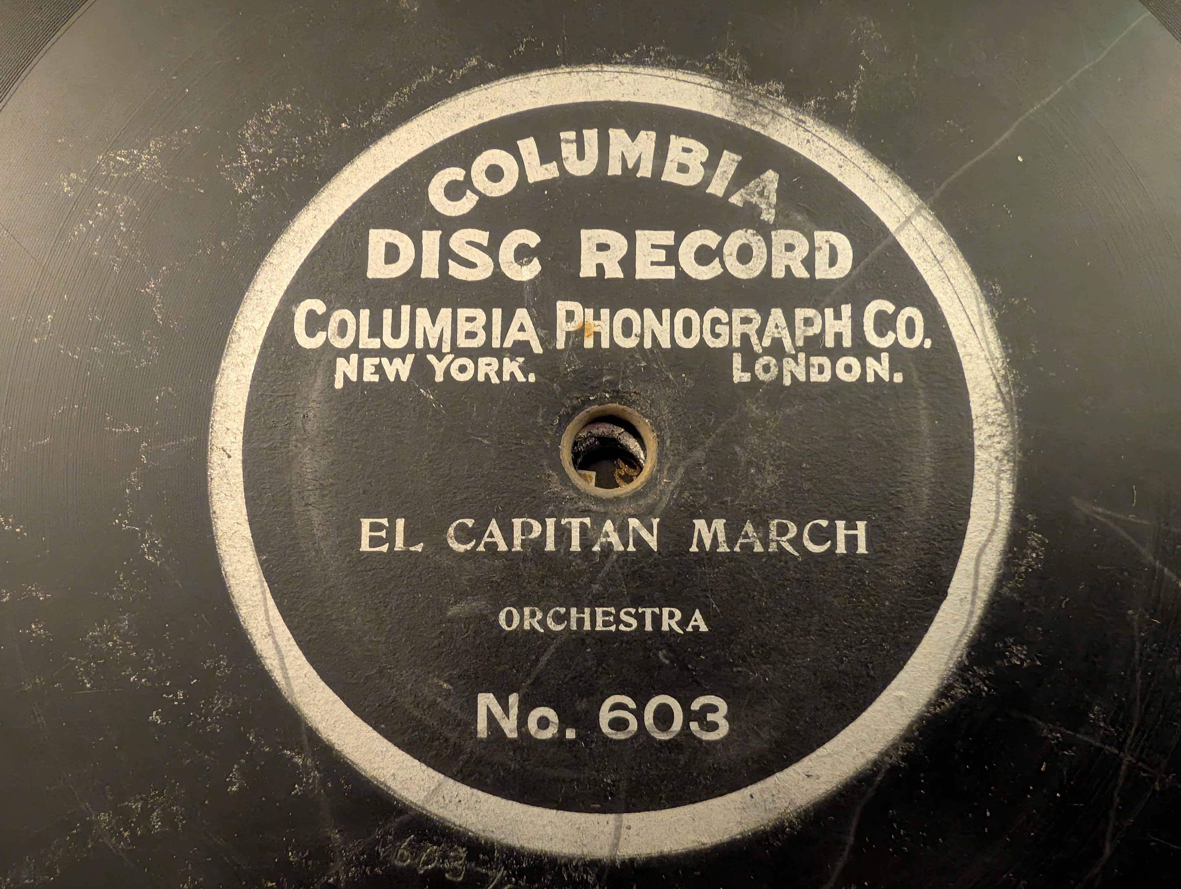 That's another feature of Globe pressings which carried over into early Columbia pressings after the pressing plant was moved to Bridgeport. The original purpose of the depression was to engage the pin in a Zonophone turntable. Again, the relationship between Zonophone, Globe, and Columbia can be found in a number of places, including those mentioned above.