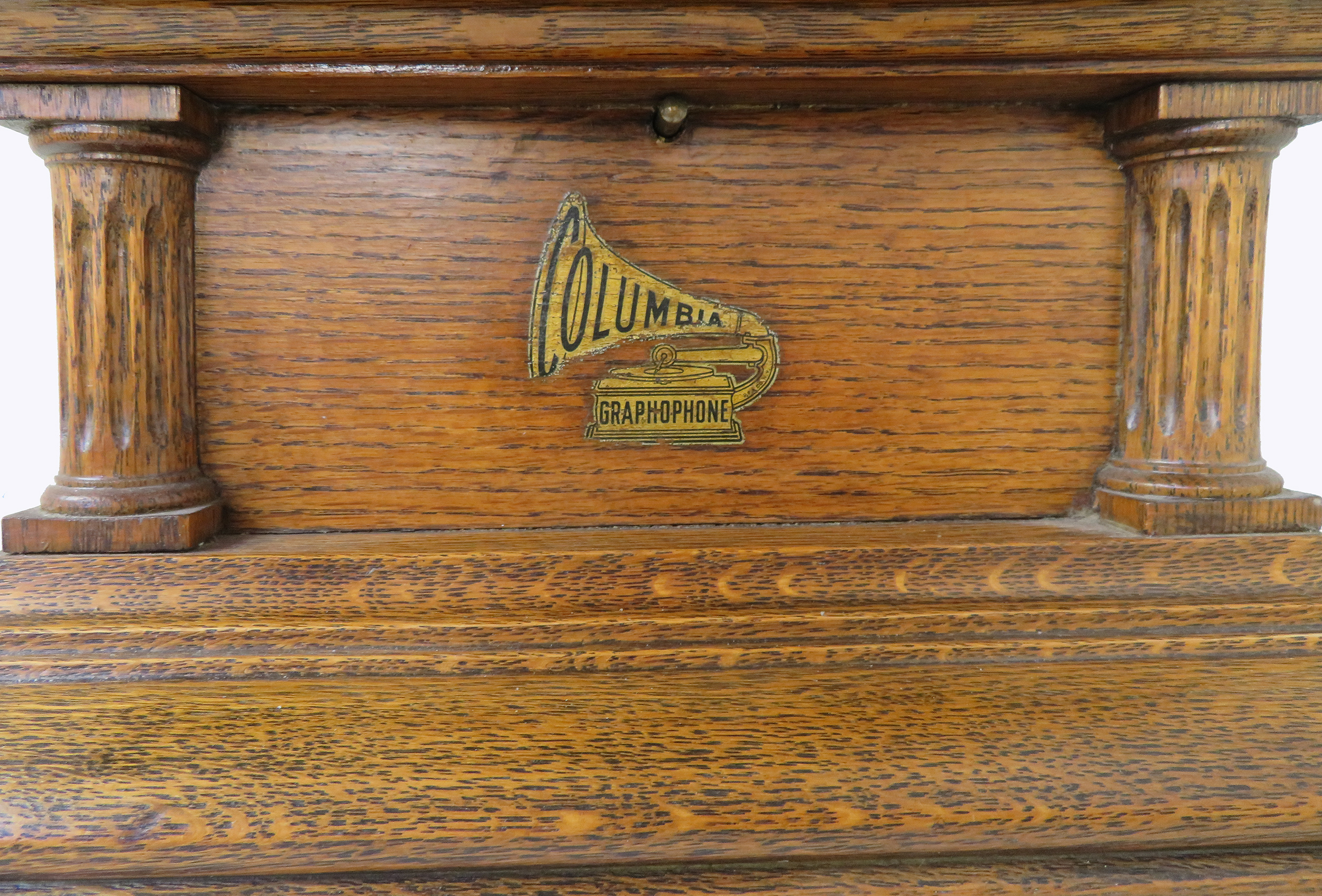 Offering an original Columbia BII phonograph. Restoration was done on this several years ago. The case is solid and has very good veneer no lifting or splits. The motor was cleaned and regreased including springs. The 3-spring motor is strong and runs smoothly. The horn has no bends and the plating is very good. All nickel parts on the back bracket are good with some slight pitting on the tone arm. The dust ring is perfectly round. The reproducer was rebuilt and plays very loud and clear.