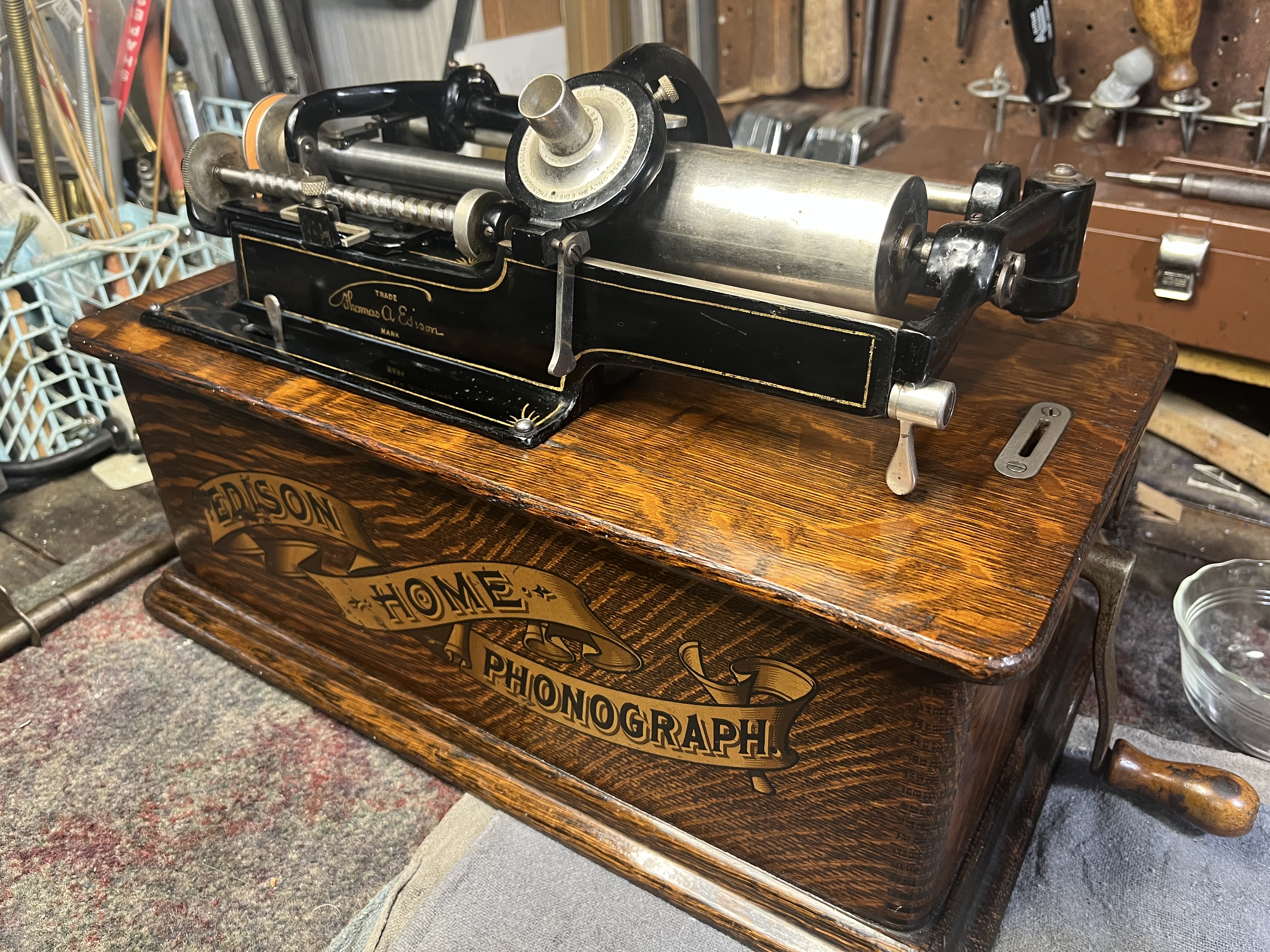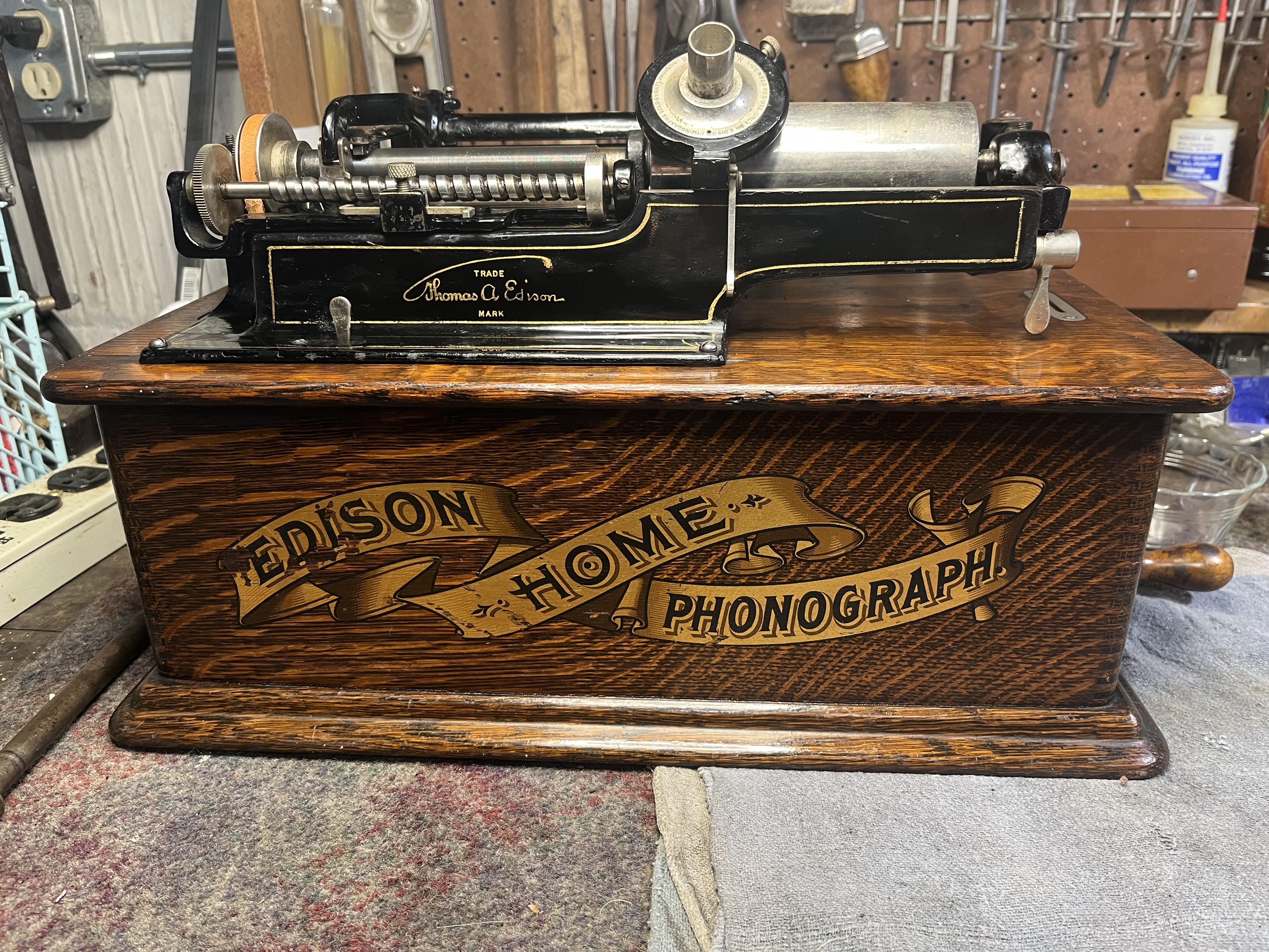I’m bringing this Edison Home with Repeater to the Wayne show this weekend. It will be on my table on Sunday and I’ll be wandering the lot on Saturday. 2-minute, repeater, crank and lid are included. Priced at the show. Stop by and check it out. Works best with a suspended horn, not included.