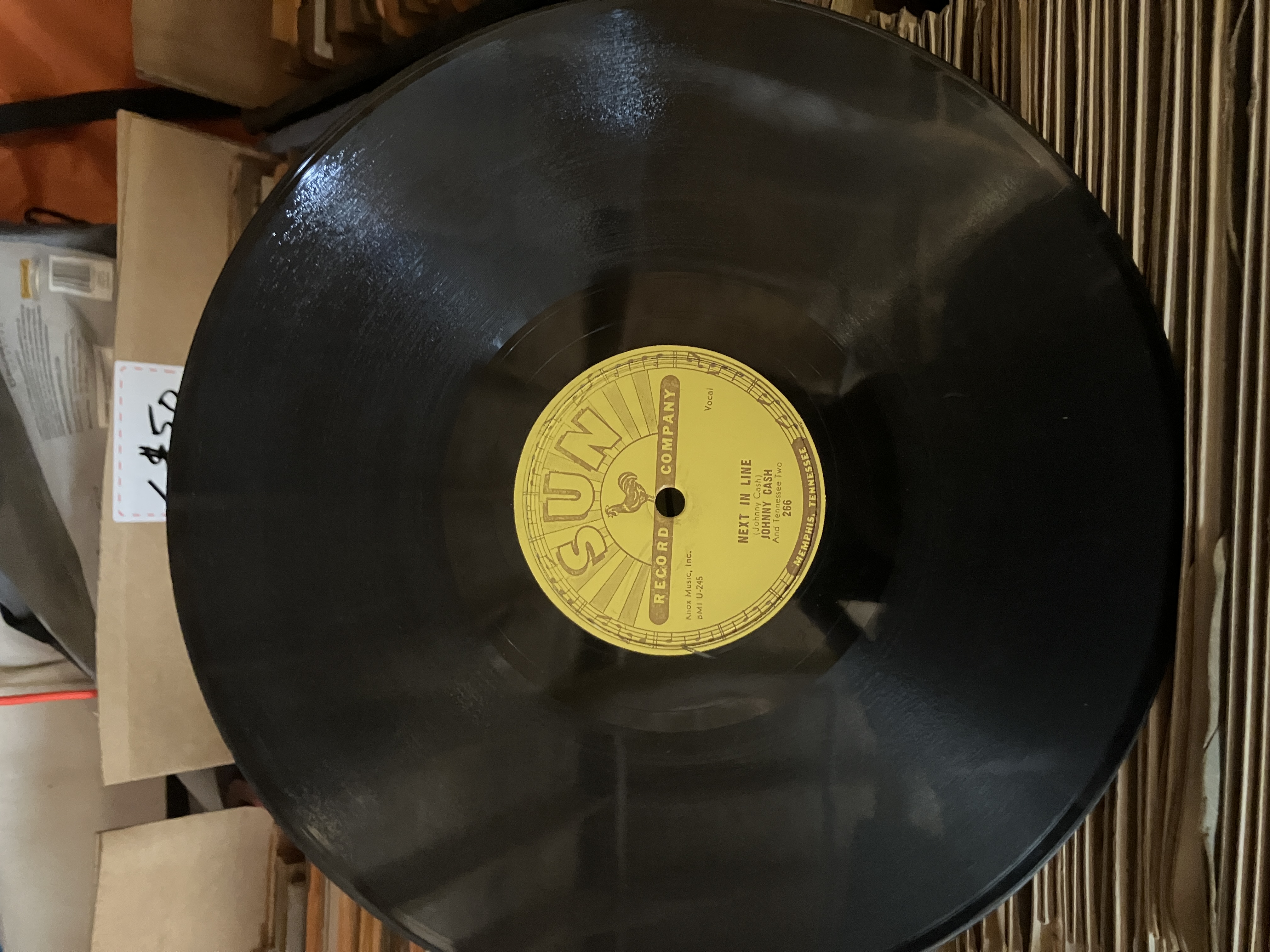 A PILE - really desirable post-war records, mostly in exceptional condition, no junk. Doo-Wop, Rock-A-Billy, Rock & Roll, R&B, Soul, Blues, Country and more. No big-band, no pop, and no junk; i.e. no red Columbia’s, no Bing Crosby, no Spike Jones, no polka, no Dinah Shore, no pipe organ solo’s, no album sets, etc. Many original SUN records and original Elvis RCA's (and one Elvis Sun) Many John Lee Hooker, Muddy Waters, Jerry Reed, Little Richard, etc.