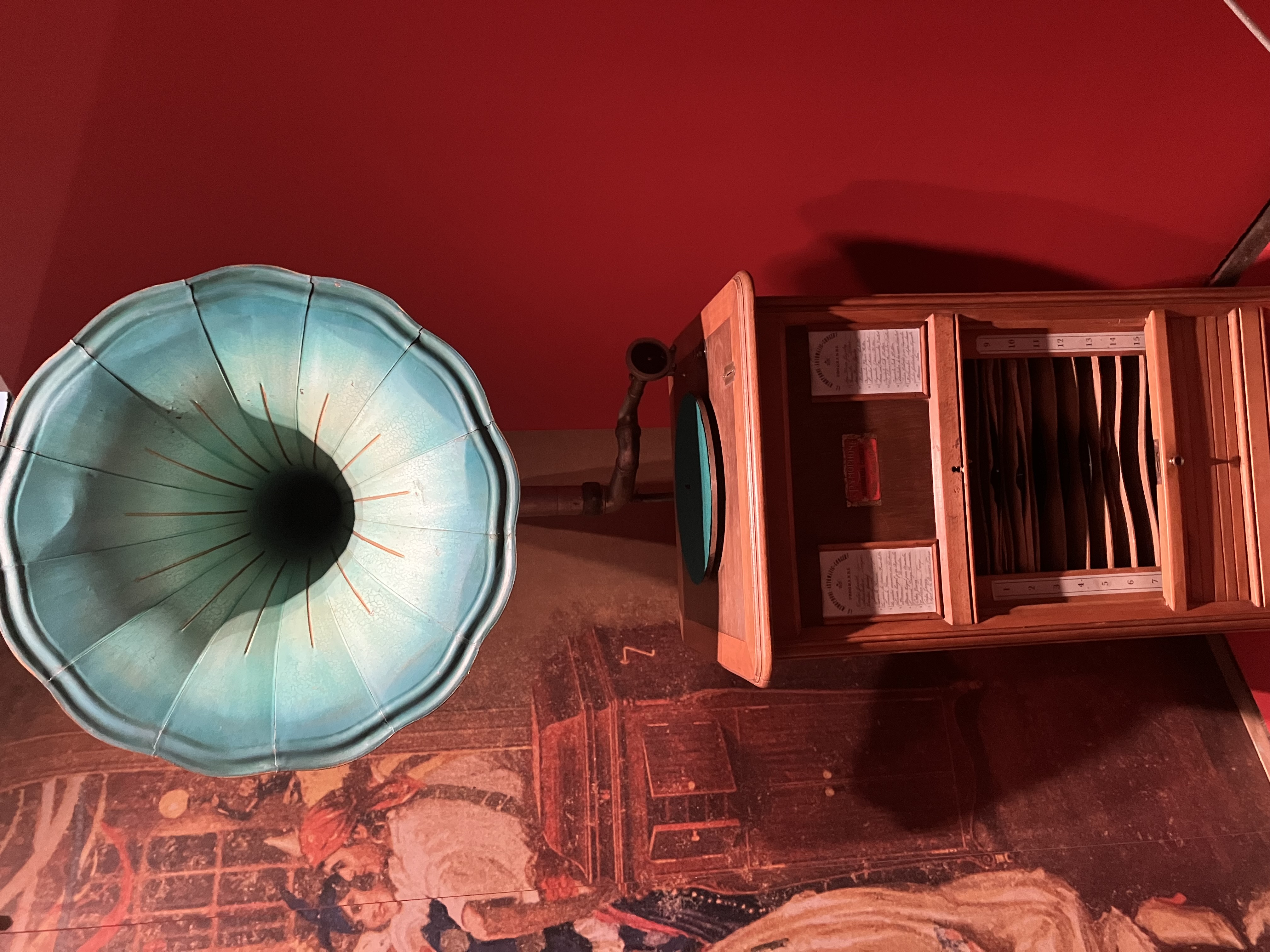 We stopped in Madrid for a few days so I contacted Pedro Martinez Diaz to ask if he lived near where we were staying. No, but then he graciously invited us to meet him at the National Library where he would give us a personal tour of a current phonograph exhibition. Pedro restored many of the machines in the exhibit: the library even set up a workshop for him for the process.