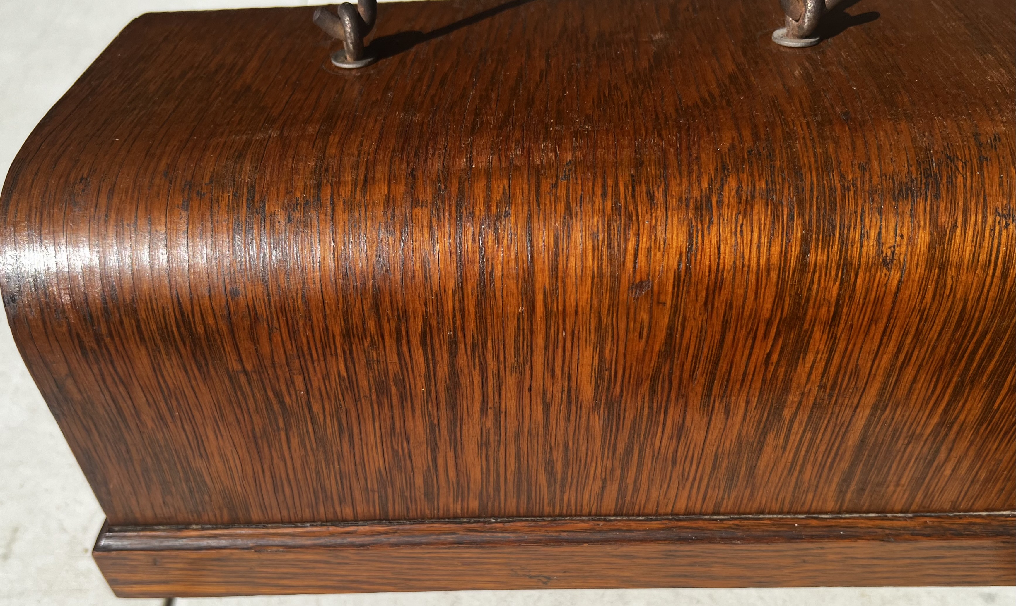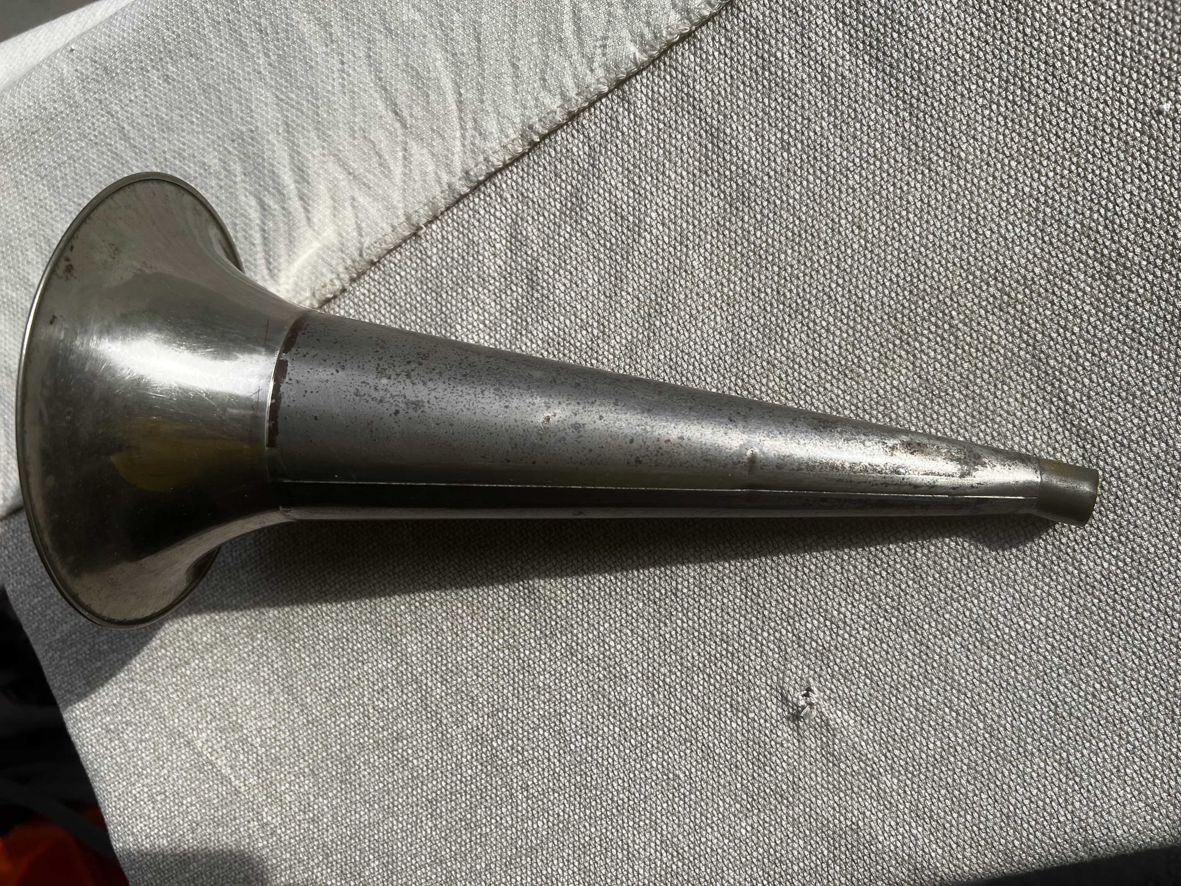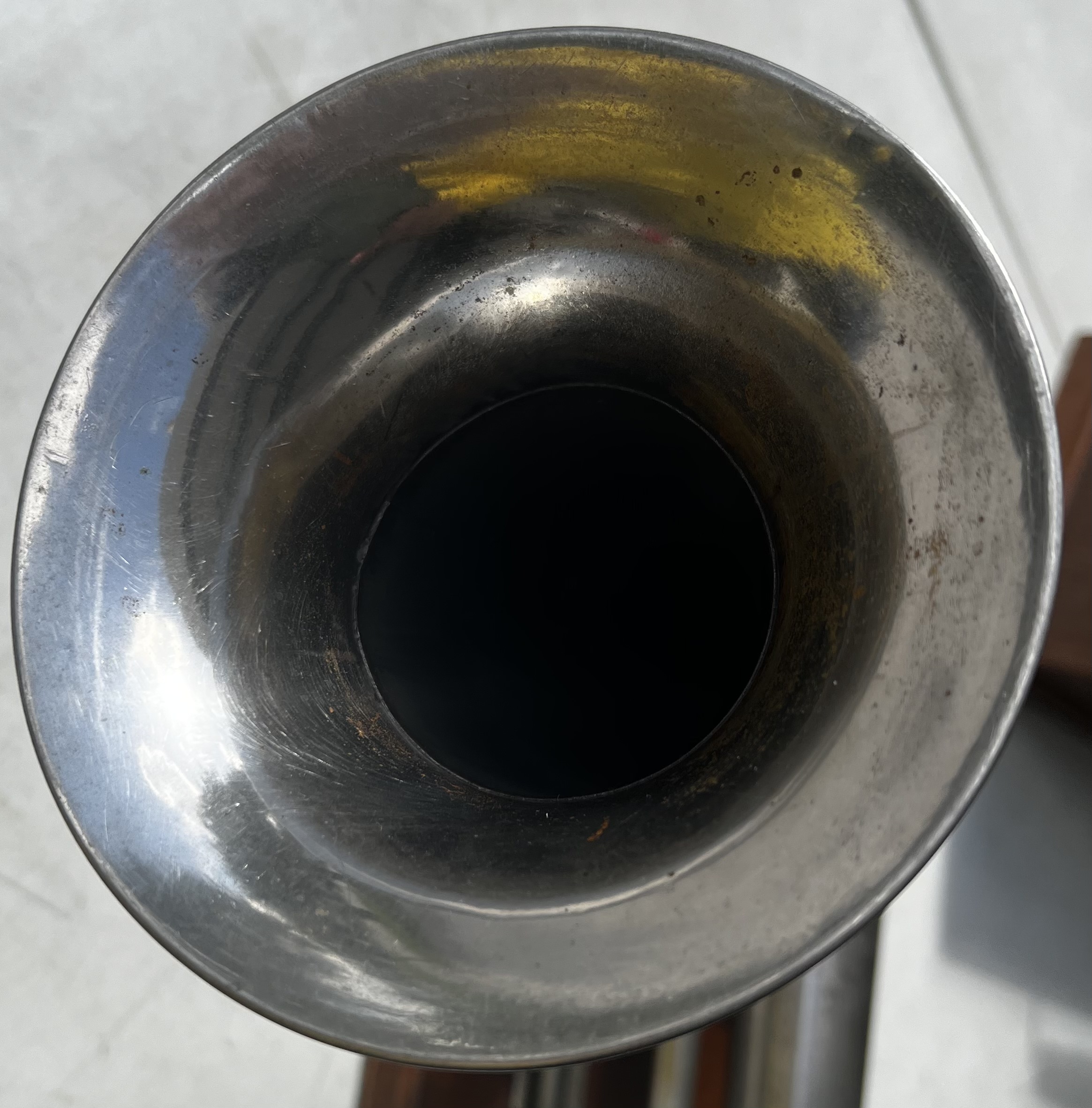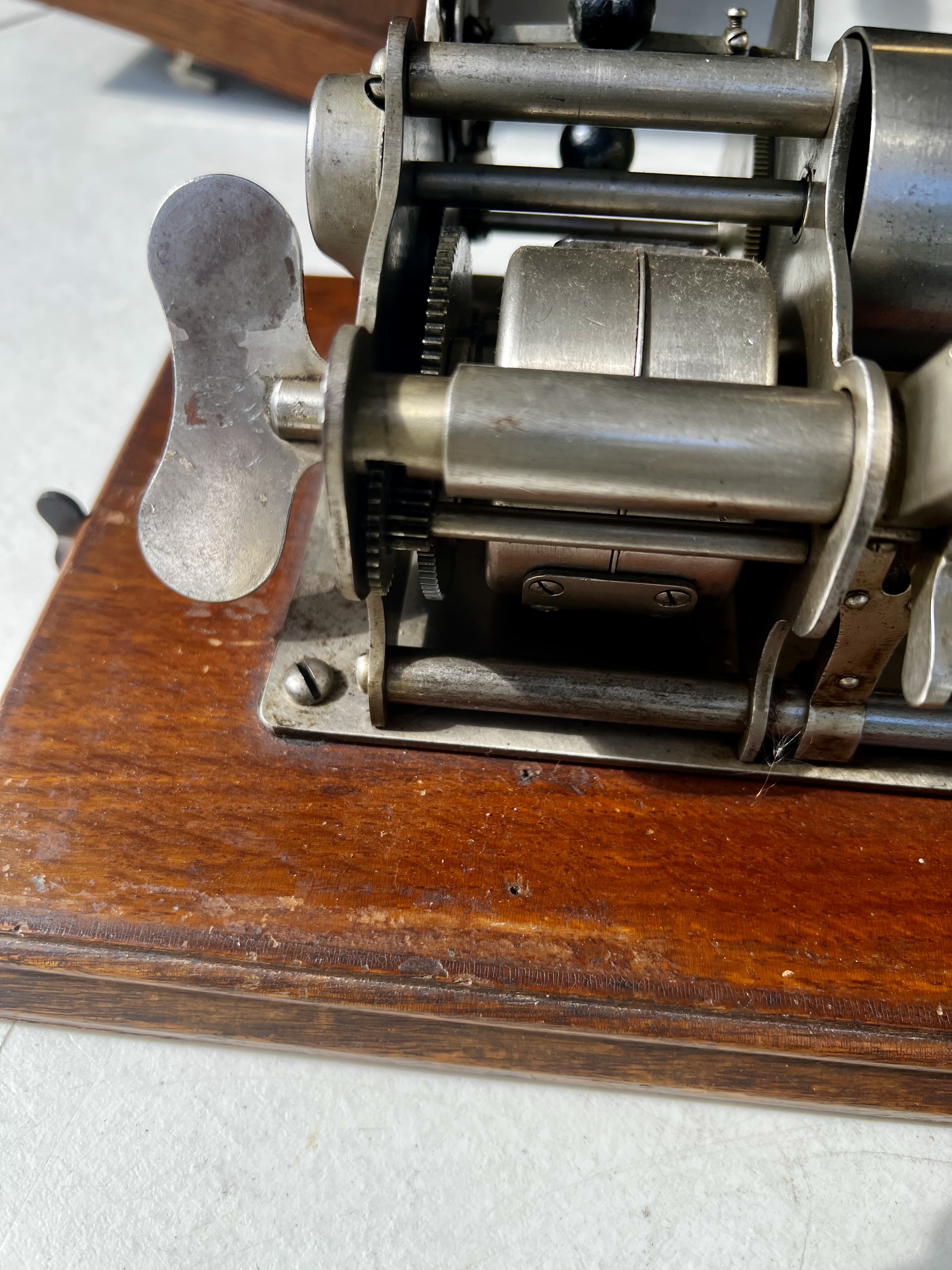 For all of you Columbia Eagle Type B Graphophone collectors, you’re going to like this, so read on. I’m offering for sale this variation from the Indiana Graphophone Company, Spear & Company General Agents, Indianapolis. This example is serial number 81853 ink stamped on the bottom of the base. As can be seen it’s done a lot of entertaining over the last 125 years and shows signs of typical wear. I chose not to clean it up, this is how I purchased it. It could be disassembled and each part cleaned up but that will be the next owners choice. I oiled it up a little and it’s been running smooth since. It easily plays through a cylinder without excessive thumping and slipping. I’ve added an original 10” nickel horn and will offer the option of not purchasing the horn if you have one you would rather use. This horn is missing most of its plating on the steel body while the brass horn bell has retained most of its nickel and presents nicely with only minor dents. It also has the proper crooked end used on Eagles. If you have questions or photo requests or want to commit to buy please PM me. Preferred payment is check, money order or Zelle. PM me for alternative methods. Price as seen with the horn is $1100. I’ll credit $300 if you don’t want the horn. Thanks for looking.
