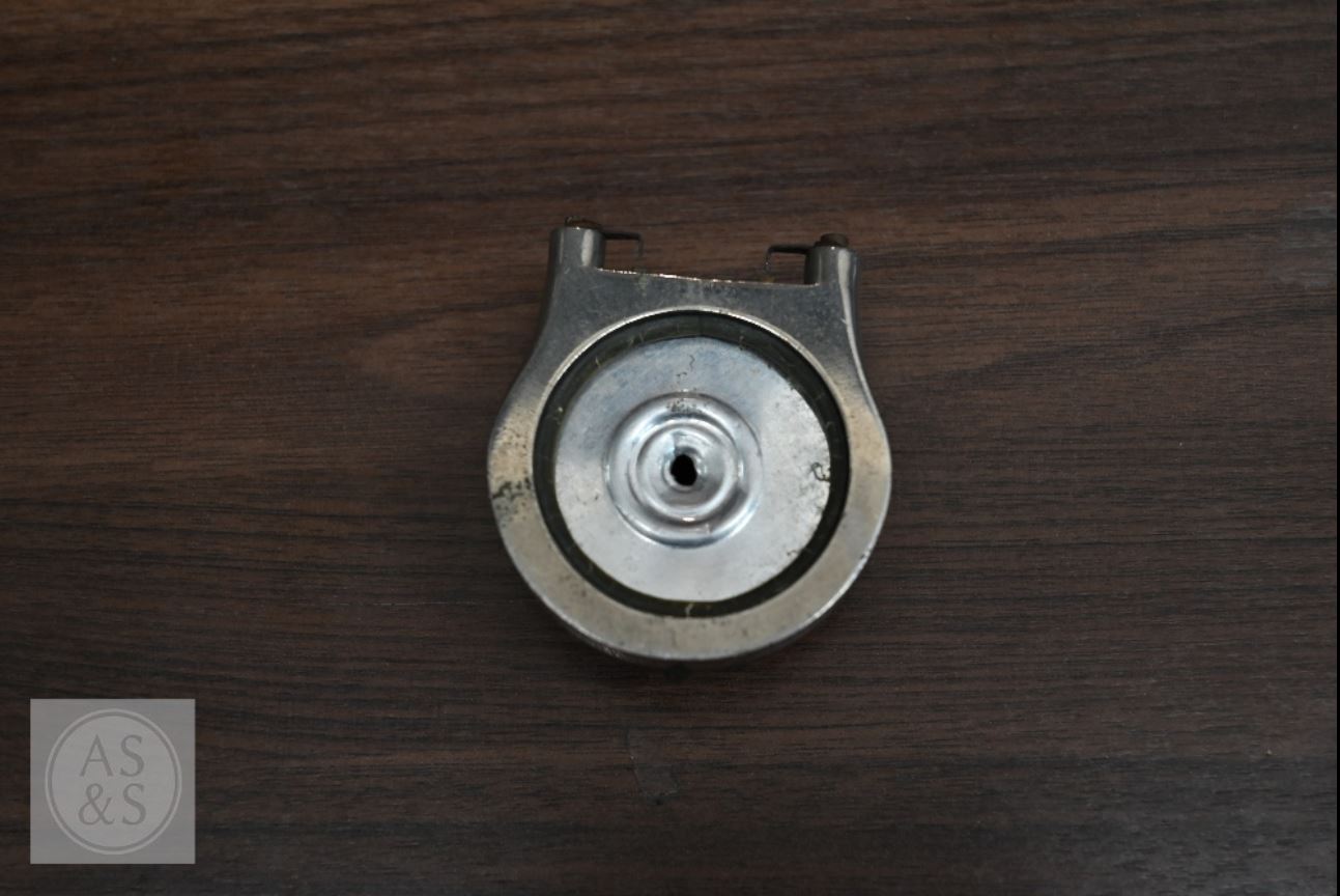 It is an interesting example and is in virtually "as new" condition in many respects but clearly has not been used since perhaps the nineteen-fifties judging by the fact that every single part is/was seized solid---even the main bearing of the tonearm ! The number on the latter is 377 (stamped on the underside of the bearing flange) and the nickel plating is perfect---as good as it gets. The horn spigot was immovable in its socket and required an afternoon's work to extract with the aid of much penetrating fluid and heat. Mechanical extraction was then necessary which was provided by my old stubby Mk IX horn which allowed a platform to bring lever pressure to bear. I thought it rather fun to use another EMG part to assist its brother !