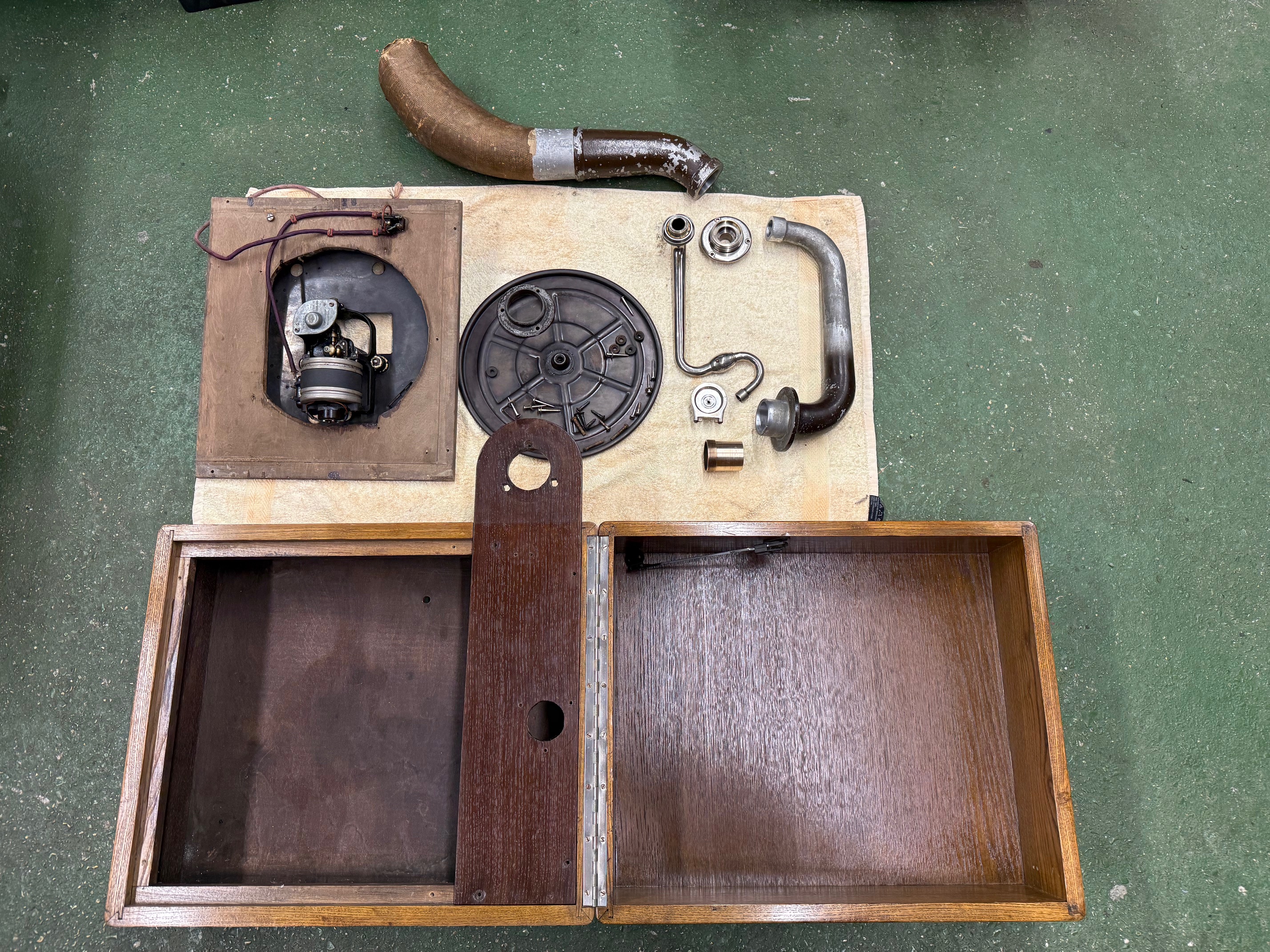 I have now reassembled everything and Alex will be collecting by train in the not too distant future so that he can utilise his cleverly restored horn, currently on an HMV 32, to make another fine fully working Mk IX gramophone.