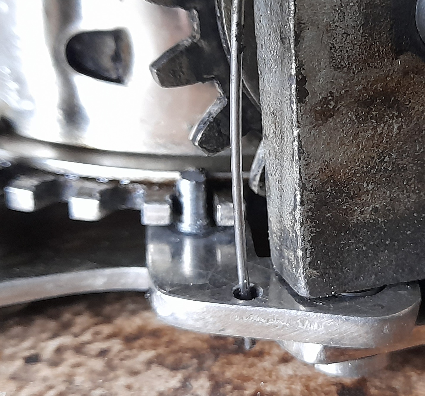 That was the problem, the part that engaged with the wheel was missing. The cheese head screw that you see in the photo turns out not to be original.