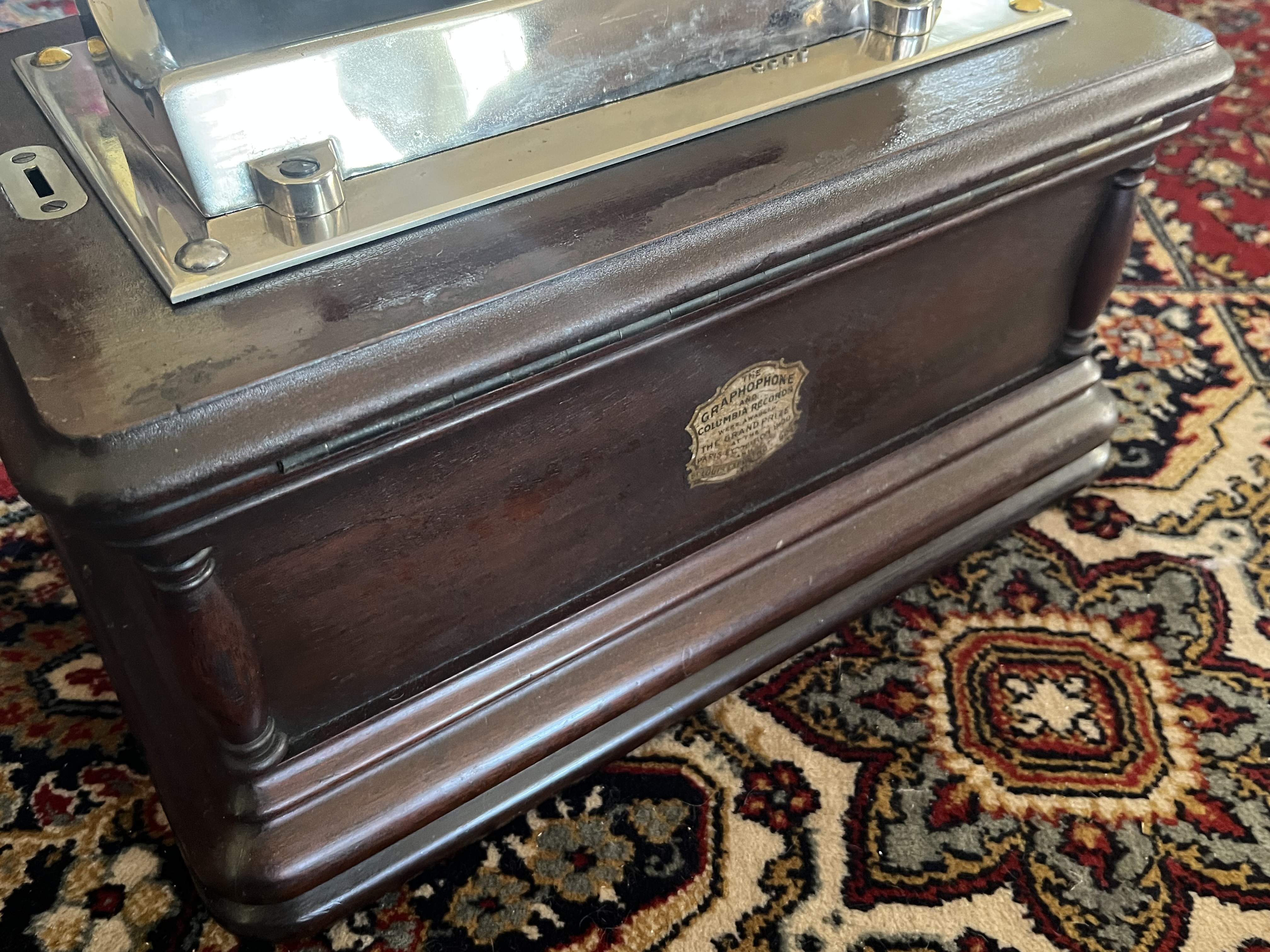 This nickel plated Columbia BG has been in my collection for 20 years and recently overhauled, nice nickel and strong 4-spring motor. 2-minute, 6” mandrel. $1250 Includes original lid and crank. Will pack safely in two boxes and split the cost with the new owner.