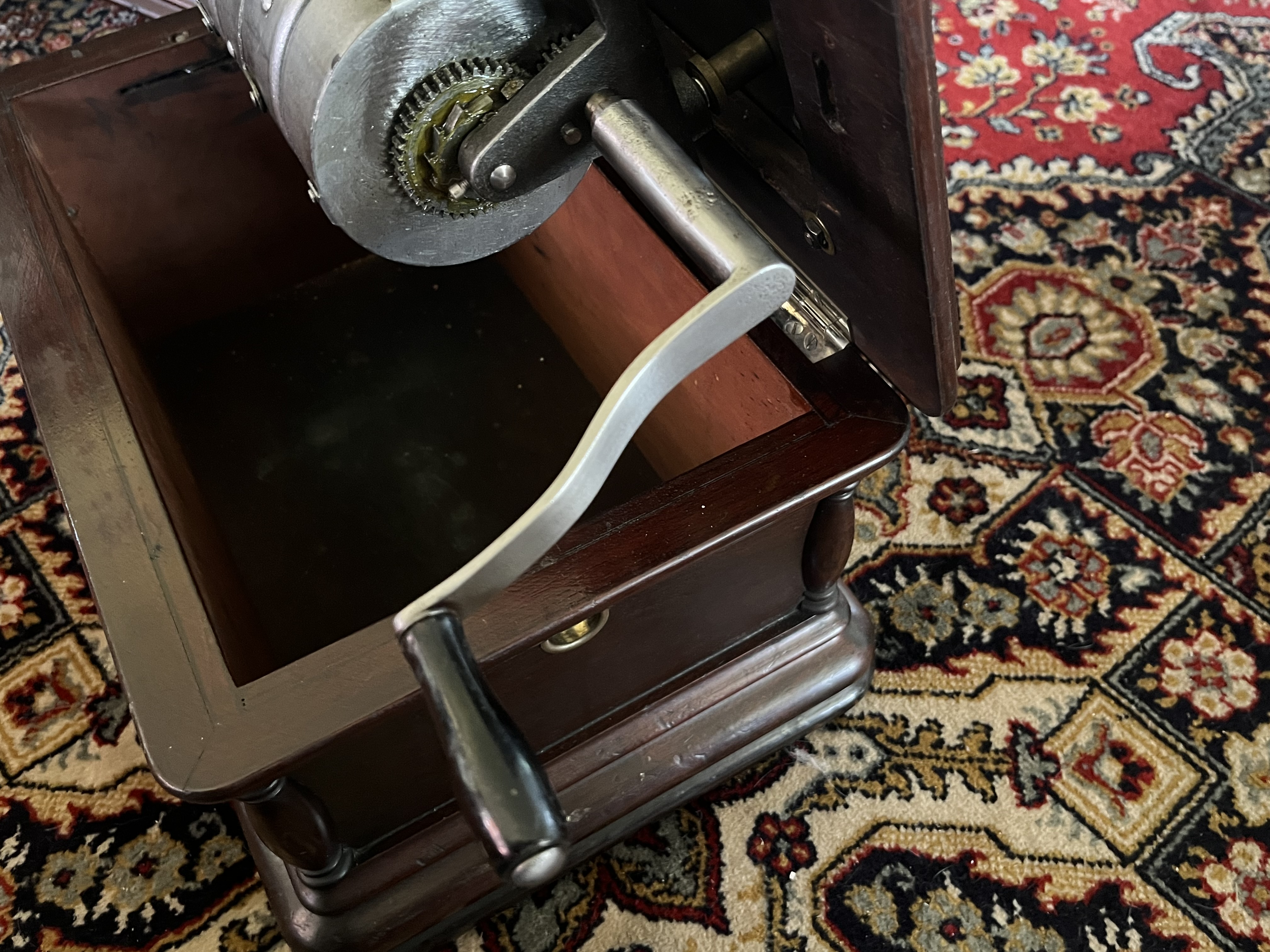 Wow this is an great looking machine, if I had the money available I would definitely get it. I honestly can't believe nobody has bought it yet. I only have one Columbia cylinder player thats working the other one is down right now. I can't get over how beautiful this machine is.