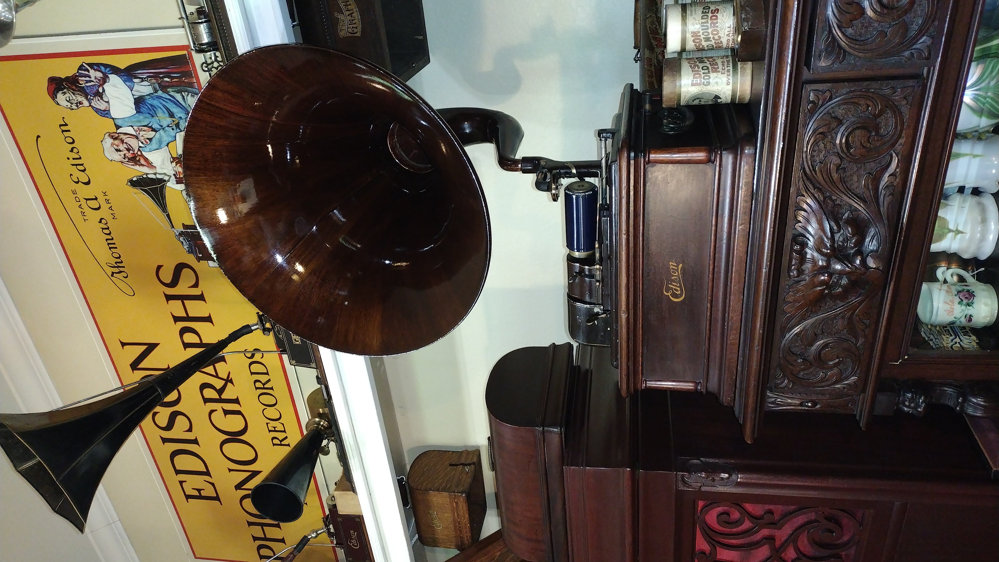 I really try to take care of our phono treasures. I immediately returned the buyers deposit saying the machine was damaged. My next step was to take the machine to a local repairman that is amazing. While it was in his possession I received a call from another collector looking for a Victor V with a wood horn. I replied that I had one and confessed to being the person that did the damage. He next asked if I had taken a photo of the damage. My immediate thought was why would I want a photo to commemorate my stupidity? I agreed to send photos when I retrieved the machine. The repairman did a flawless repair. I took photos of all four corners and sent them to potential buyer. He replied that he would buy the machine. I replied that I was driving to California and I insisted that he inspect the machine before buying. He personally inspected the corners and could not tell which one was repaired and he bought the machine. It was a major repair that will be lost to history.