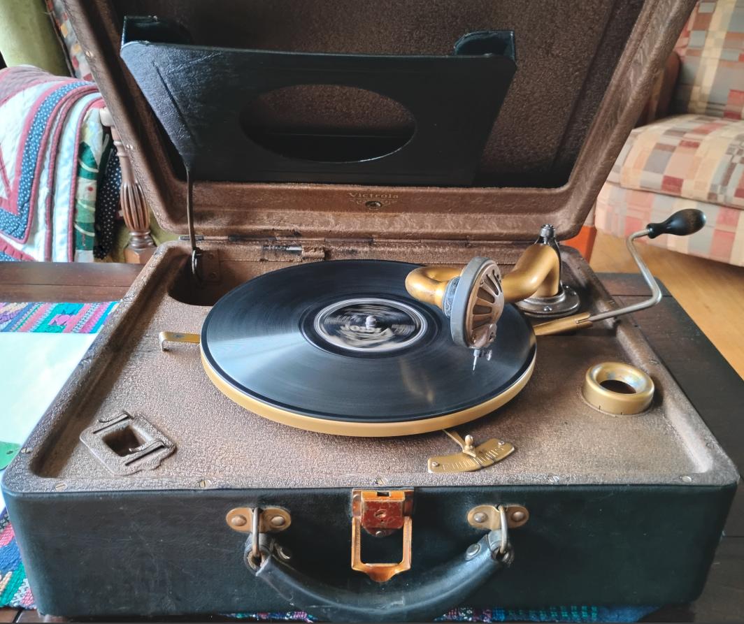 The wife and I were sitting on the couch in our living room with the VV2-55 open on the coffee table and a box of 1920s records at hand. The weather outside was cold with squalls of rain. We were sipping citrus-fruit hot rums (large mug, one heaping Tbsp Demerara sugar, juice of half an orange, half a lemon, and half a lime, one whole large clove, two large whole allspice, one-half cinnamon stick, 1.5 Oz of Hart & Son 1804 rum, .5 Oz Triple Sec, 2 dashes Angostura Bitters, topped up with boiling water). I had played about ten records had just put on another which was about half way through when suddenly there was a bang as the spring let loose and the machine stopped dead. :shock: