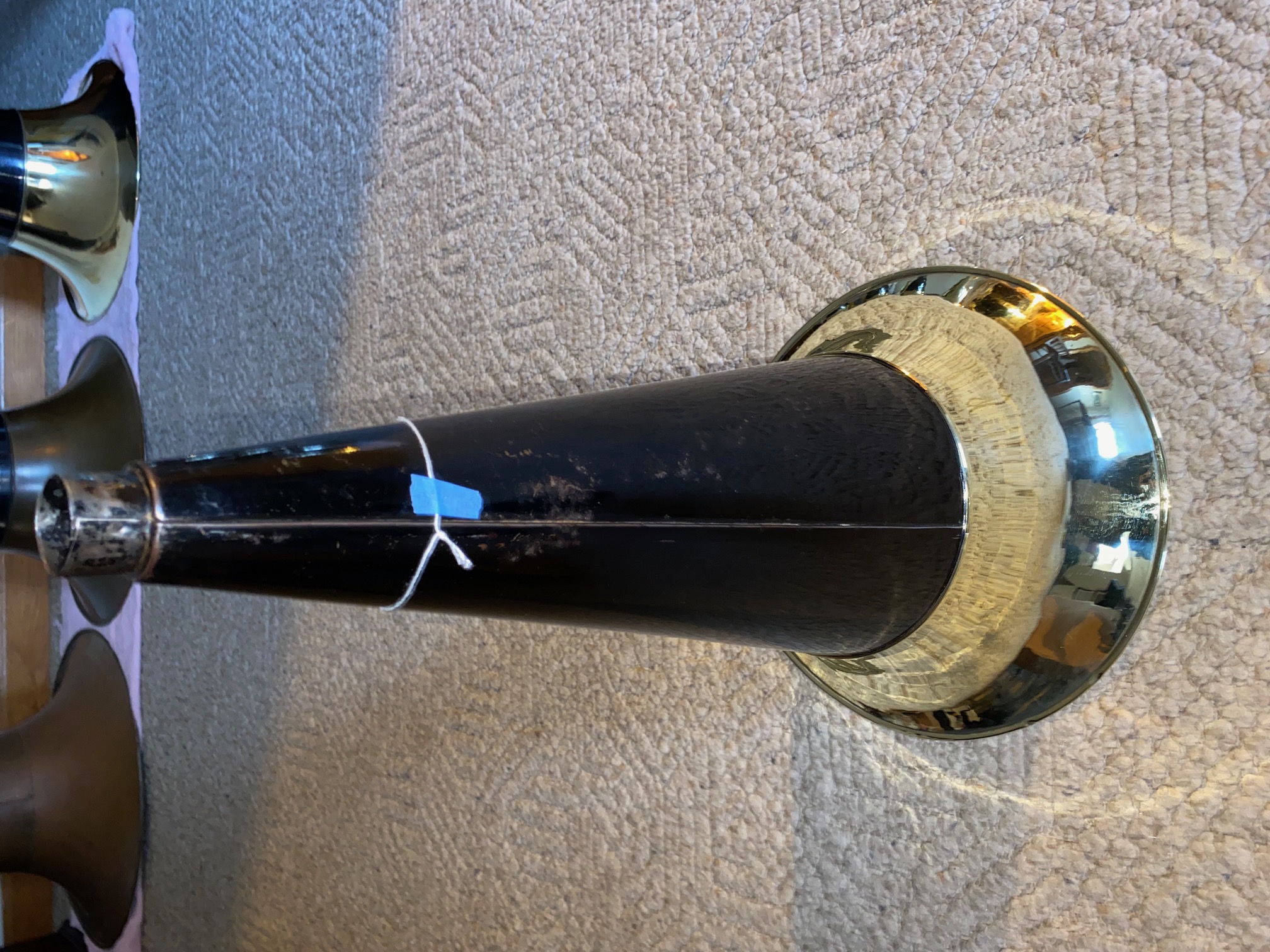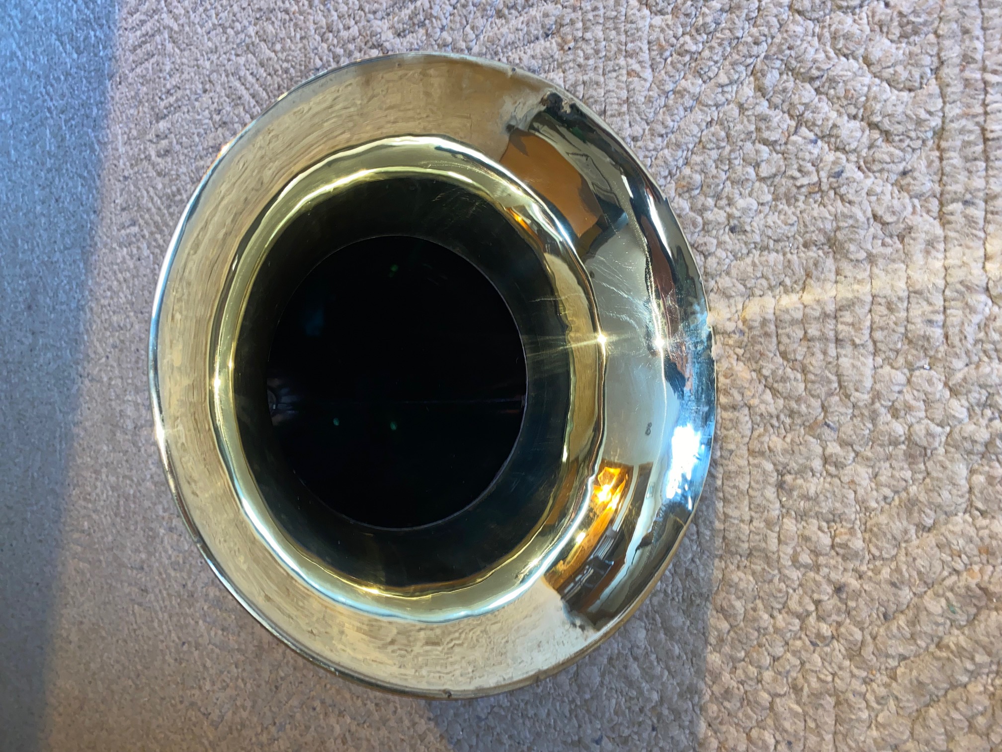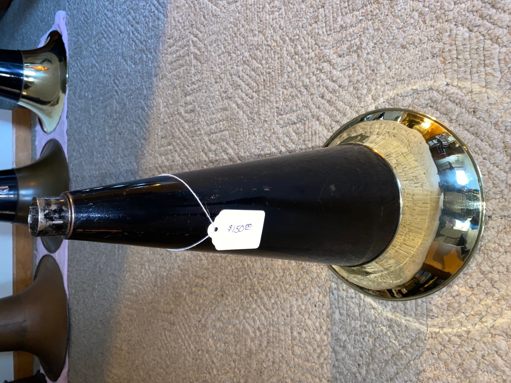 Hi and Happy Holidays again! Another horn saved for another 100 years! 19 Long by 11.5" bell. Original black paint with brass bell and no dents. A few marks on the paint but this horn is in better condition than most. $150 plus shipping. Please text, PM, Email or call to purchase. Thank you - John Duffy 860-966-2827
