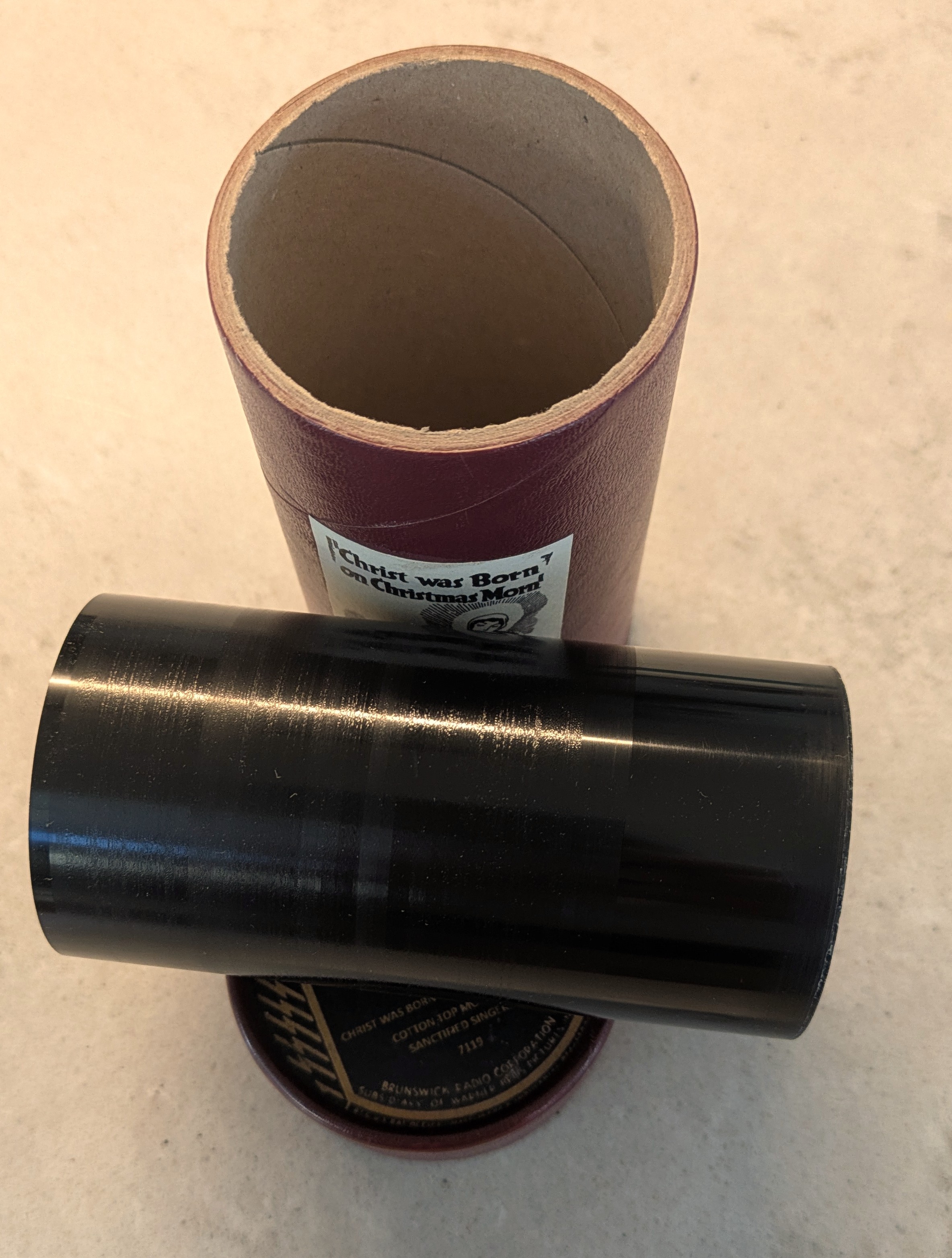 One of the quintessential vintage Christmas records – Christ Was Born on Christmas Morn by the Cotton Top Mountain Singers. This cylinder was professionally copied from one of less than a hand-full of original copies of this super rare Brunswick Race Series record.