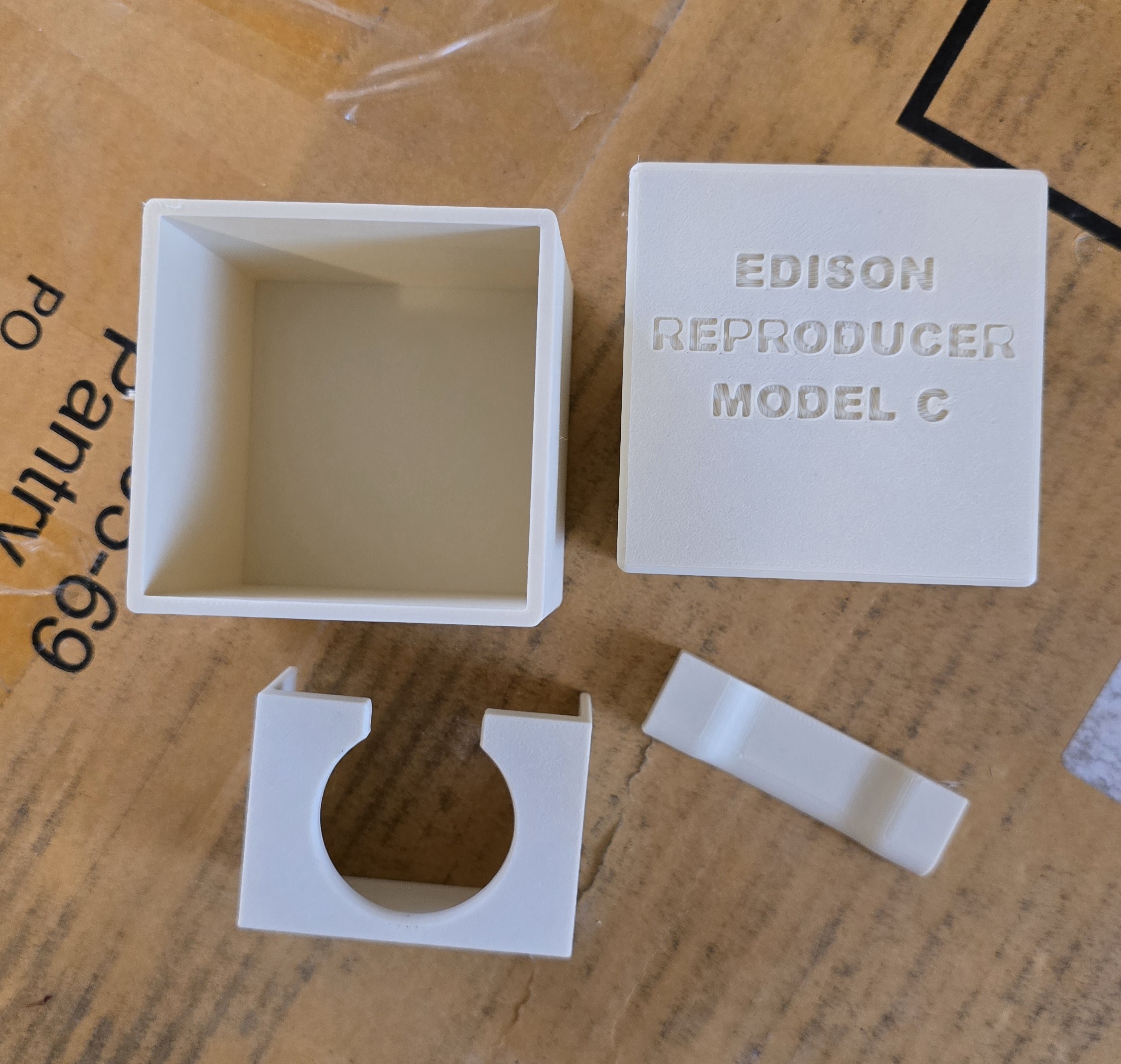 I've been trying to find some way of making prototypes for some parts that are broken for some of my oddball phonographs and my wife and kids were nice enough to buy me a 3d printer. The first thing I made was a small horn for a Columbia Q and was not very successful so I have two C reproducers that don't have storage boxes so I made a box for them. They cane out pretty good but will be changing the filament to tan and will be making the" pillow " from softer material. Eventually I will be able to make more things. Really liked this gift because it fits perfectly with all my hobbies.
