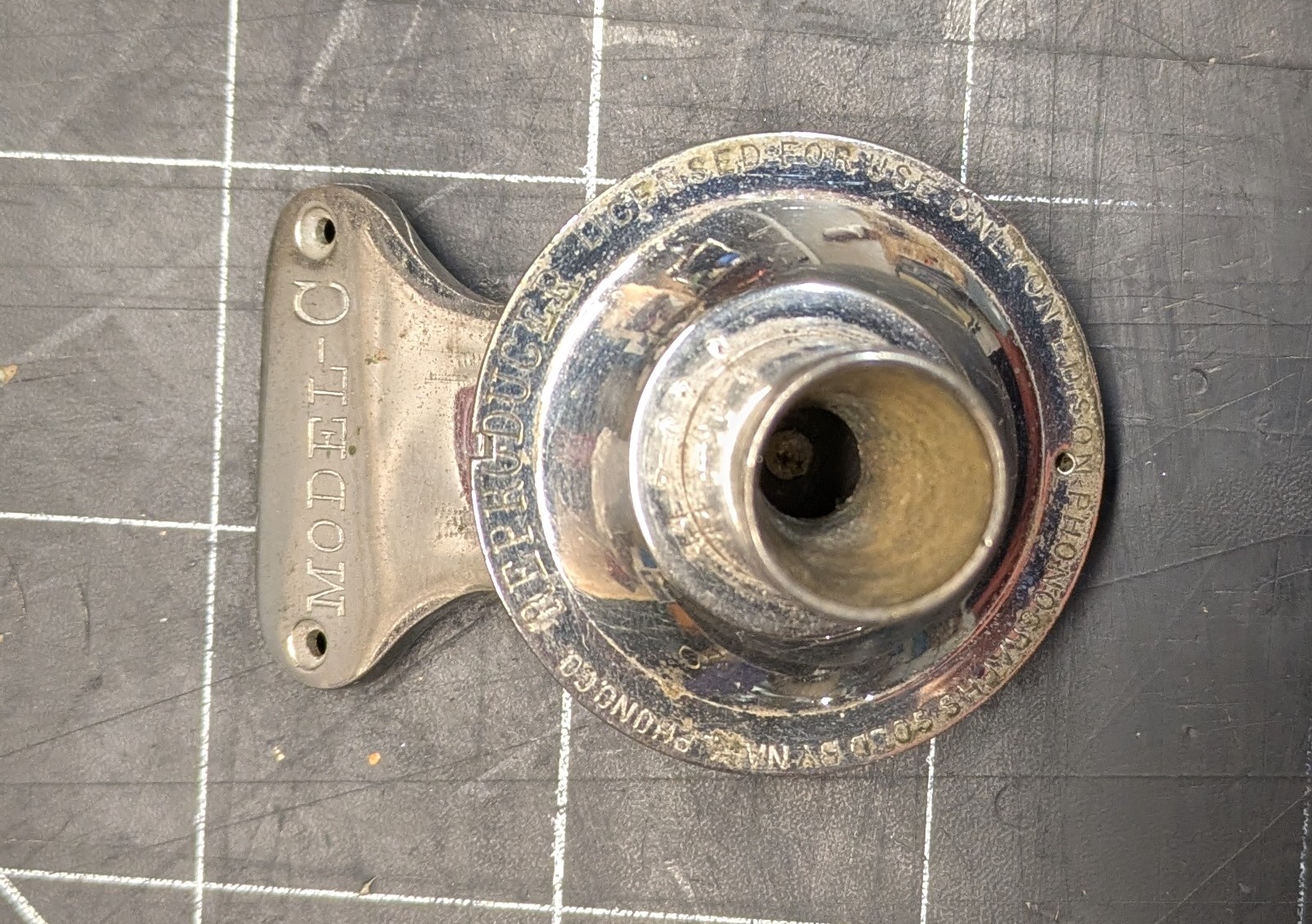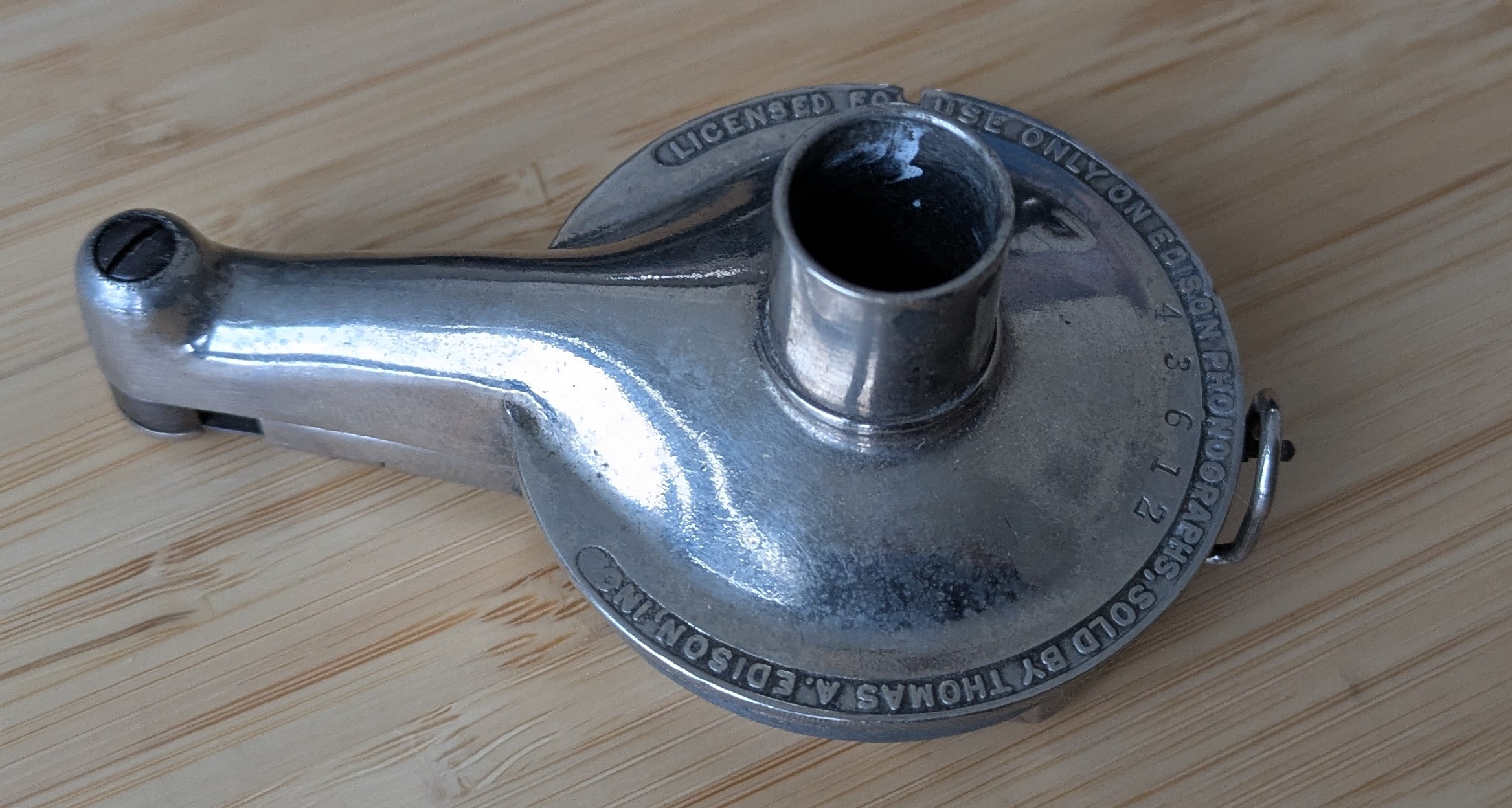 Edison Model C- This is a common reproducer in exceptional condition. It plays and looks wonderfully. It has good saphire.It has the earlier mica diaphragm, original linkage, everything just as it should be. It would be appropriate for any Edison with a notched carriage. A nice find with the condition.