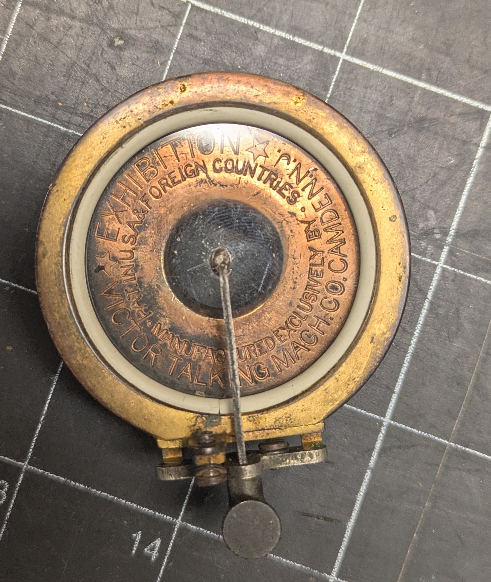 Here is a nice gold Exhibition reproducer. Presents well, and plays great. Has a good diaphragm and a new gasket. Its an early one, round hole needle chuck.