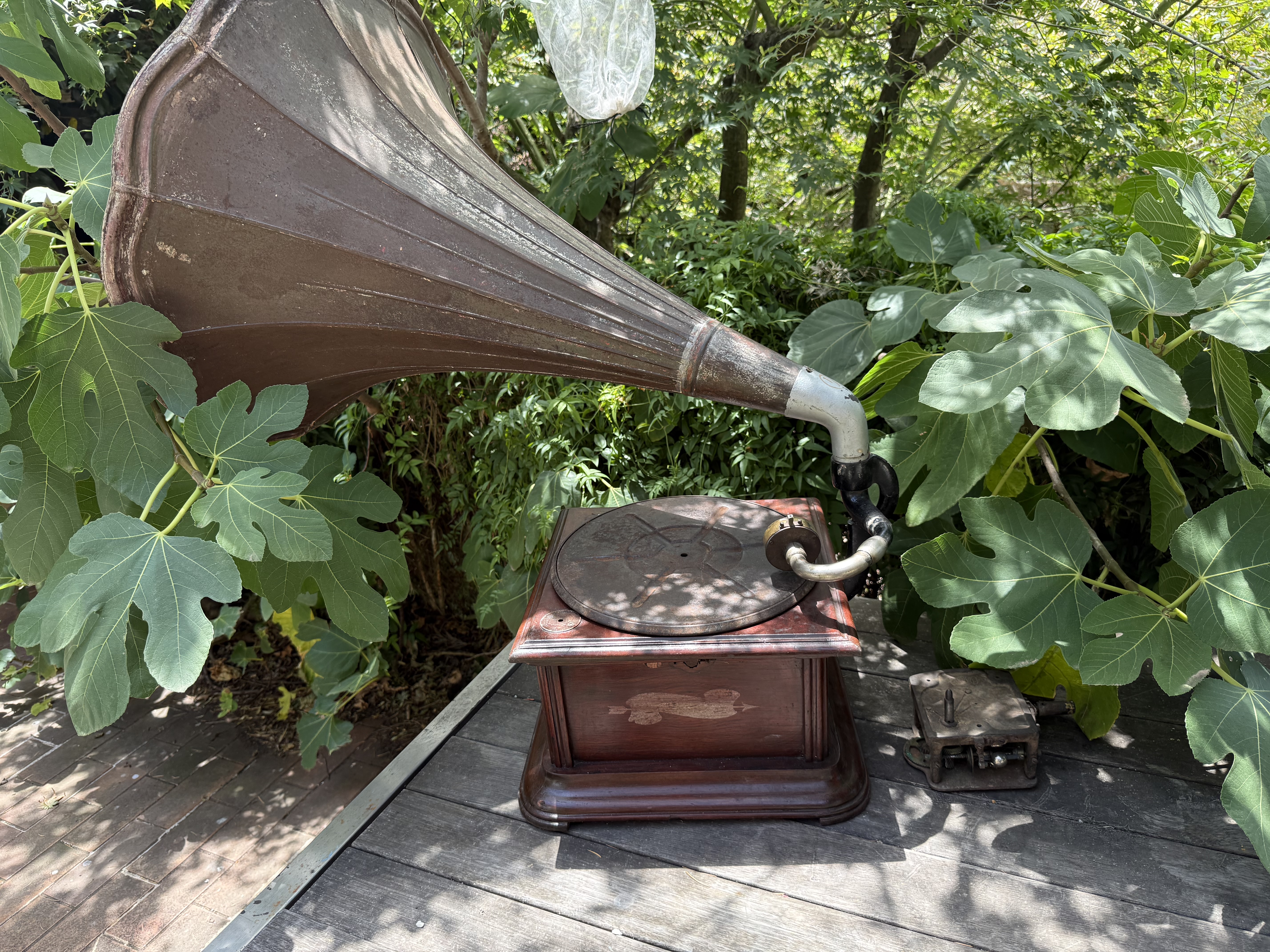 I just wonder if anyone has any thoughts about the faded decals? - the clover one and the banner with an arrow through it - I know that the gramophone itself is ‘junk’ but I may try and resurrect some parts to make up a generic Frankenphone for the workshop - the horn is huge and the tin quite heavy and robust…