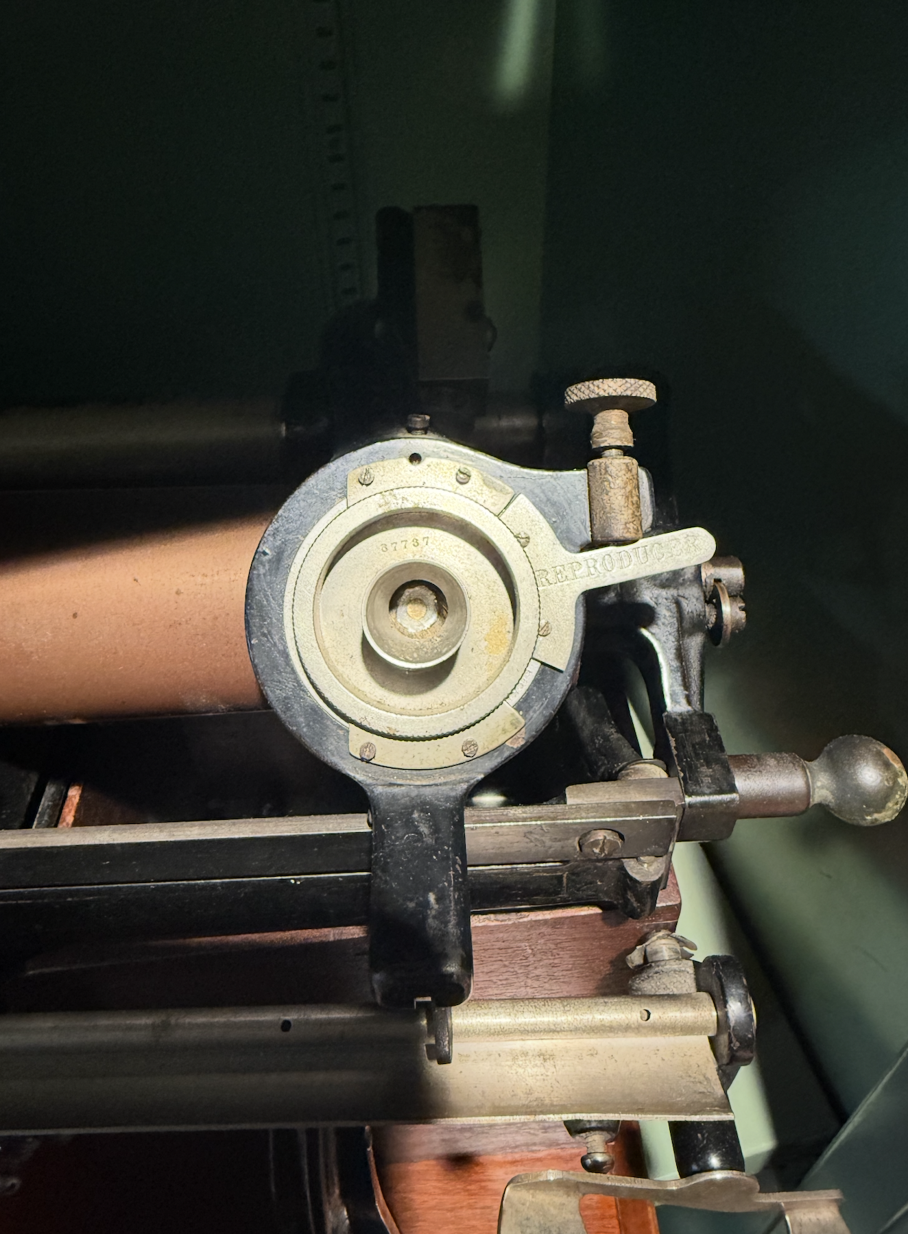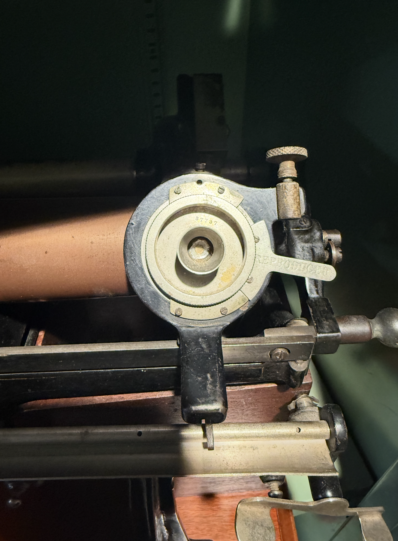 The factory clips are installed 180 degrees out of phase in that photo. The flat spots are the stops for when rotating a Standard speaker between record and playback mode. You can see the correct orientation in the attached pics (though this is an Automatic, not a Standard Speaker). Up position for playback, down position for record.Andersun wrote: Fri Feb 06, 2026 4:32 pm An Emerson clip is a device that makes it easy to take off and replace reproducers. The factory used brackets with 4 screws to hold the reproducer on. Your clip is missing a small piece that acts as a stop when rotating the clip. The United States Phonograph Company used them and stamped their name on them. See pictures provided.....