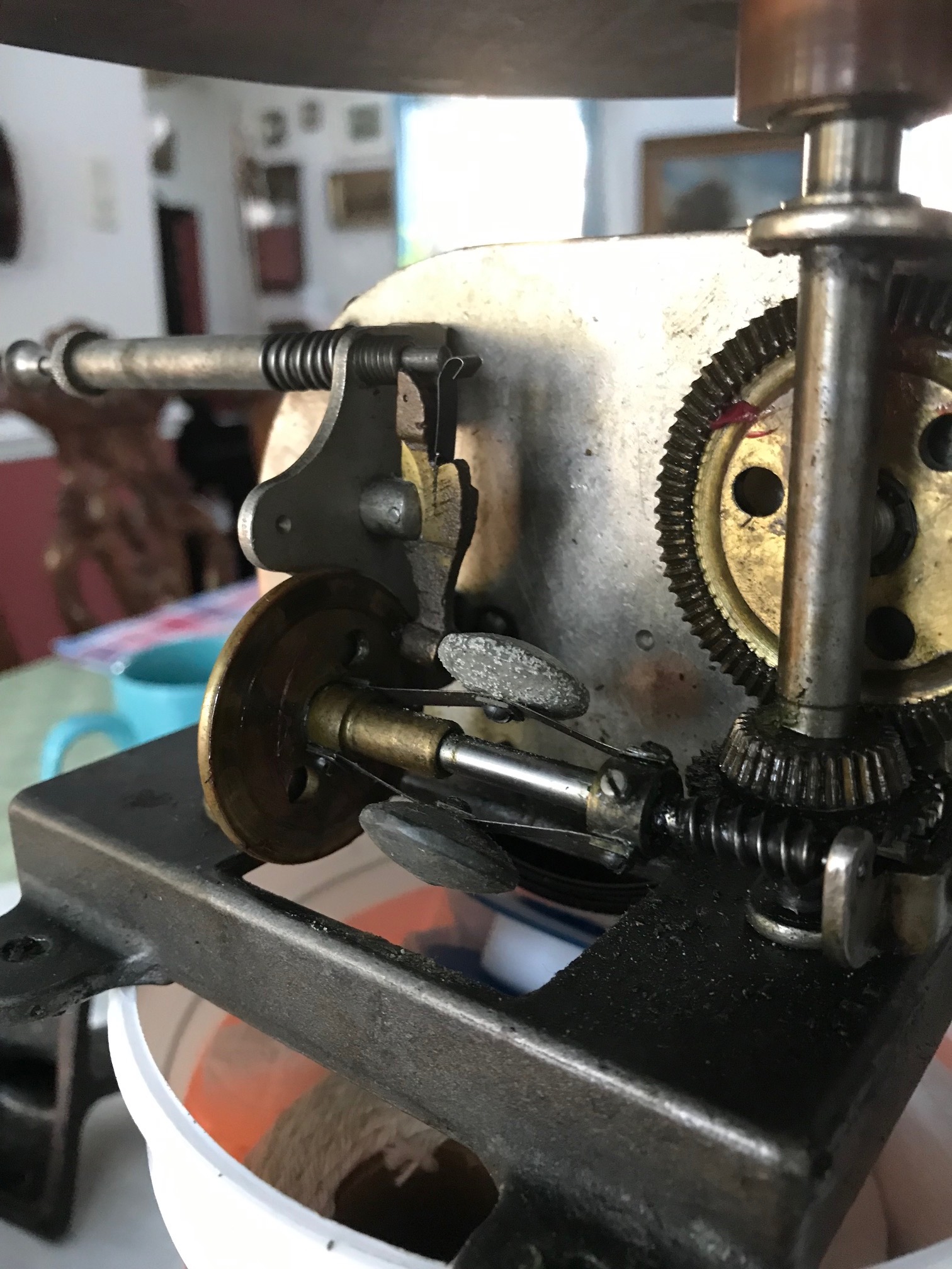 Here's an update. I've removed the governor and taken it's arbor out. I had to use a blow torch in order to get the weight assembly to budge. I will now clean everything up, including the pivots, oil everything, and use only light oil on the governor disk.