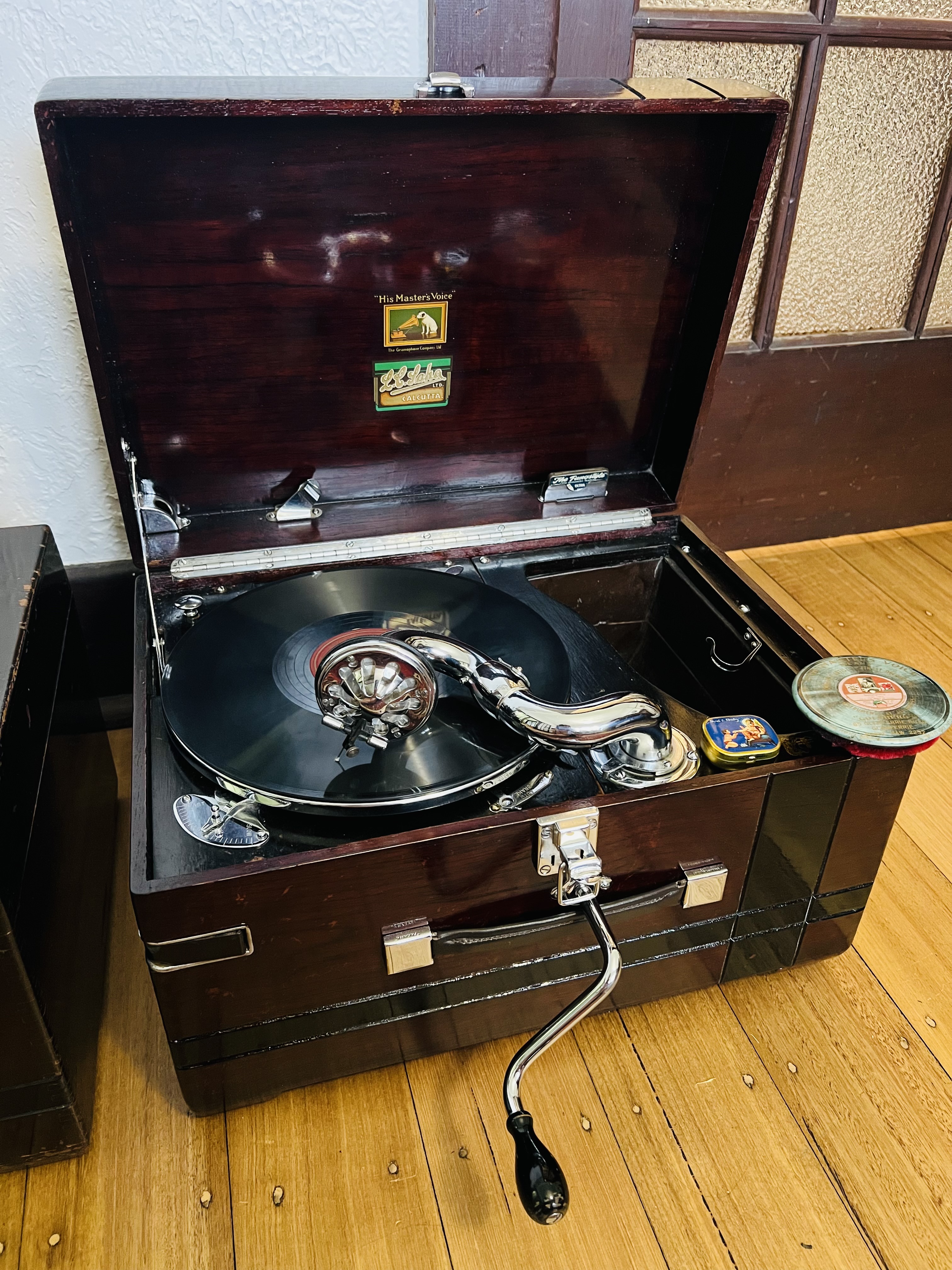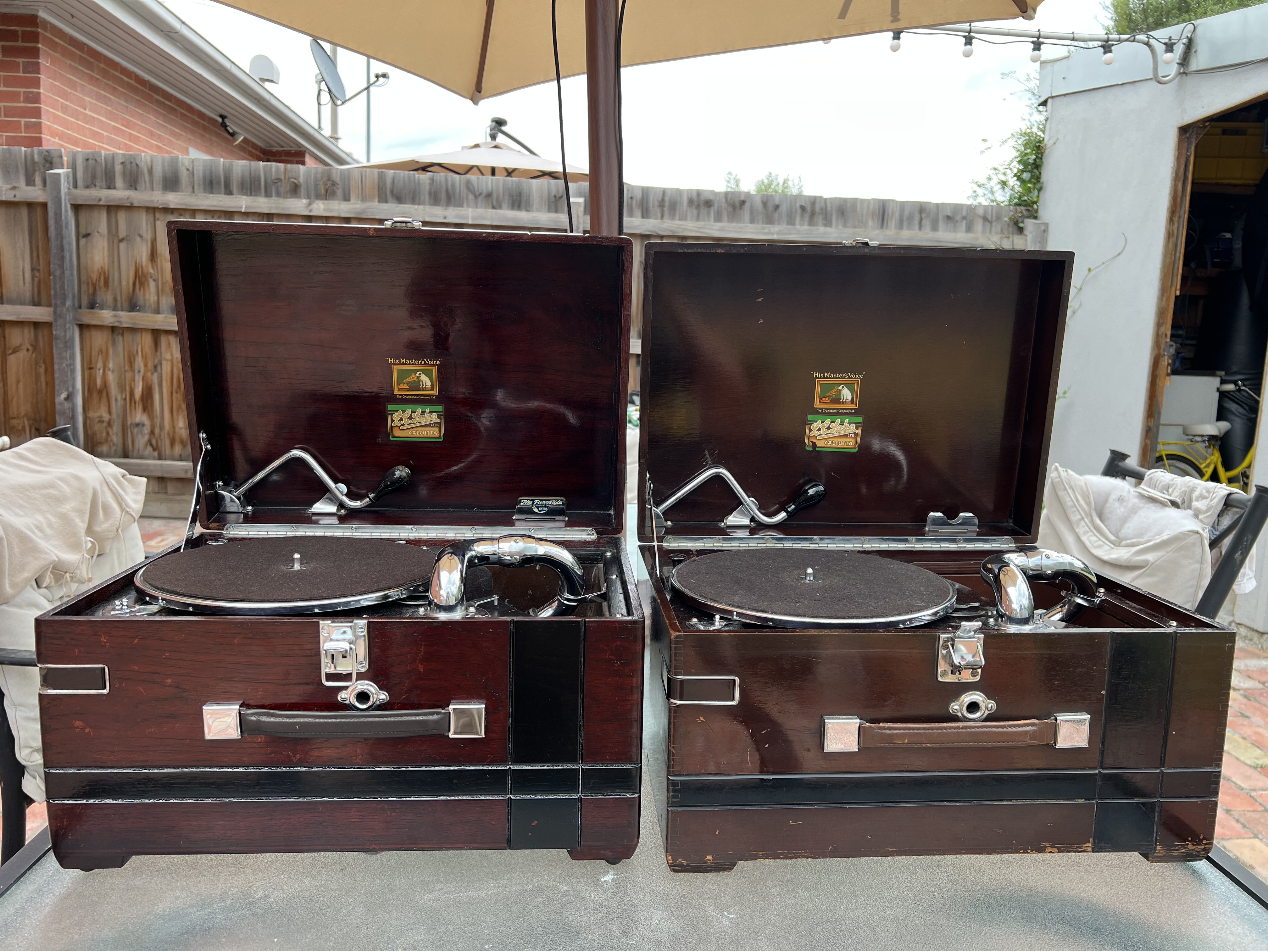 These large horn 114&118 tropical models with No.5 soundboxes and teak cases do sound grand when compared to ordinary 102. The 114 has even bigger sound as the lid projects more sound than sideways opening 118. However I find 118’s construction more appealing when placed semi permanently on an occasional table. Nobody seriously carries these extremely heavy machines around their property, unless you have dedicated servants for the job. The strong dual barrel No.32 motor is a joy to crank up.