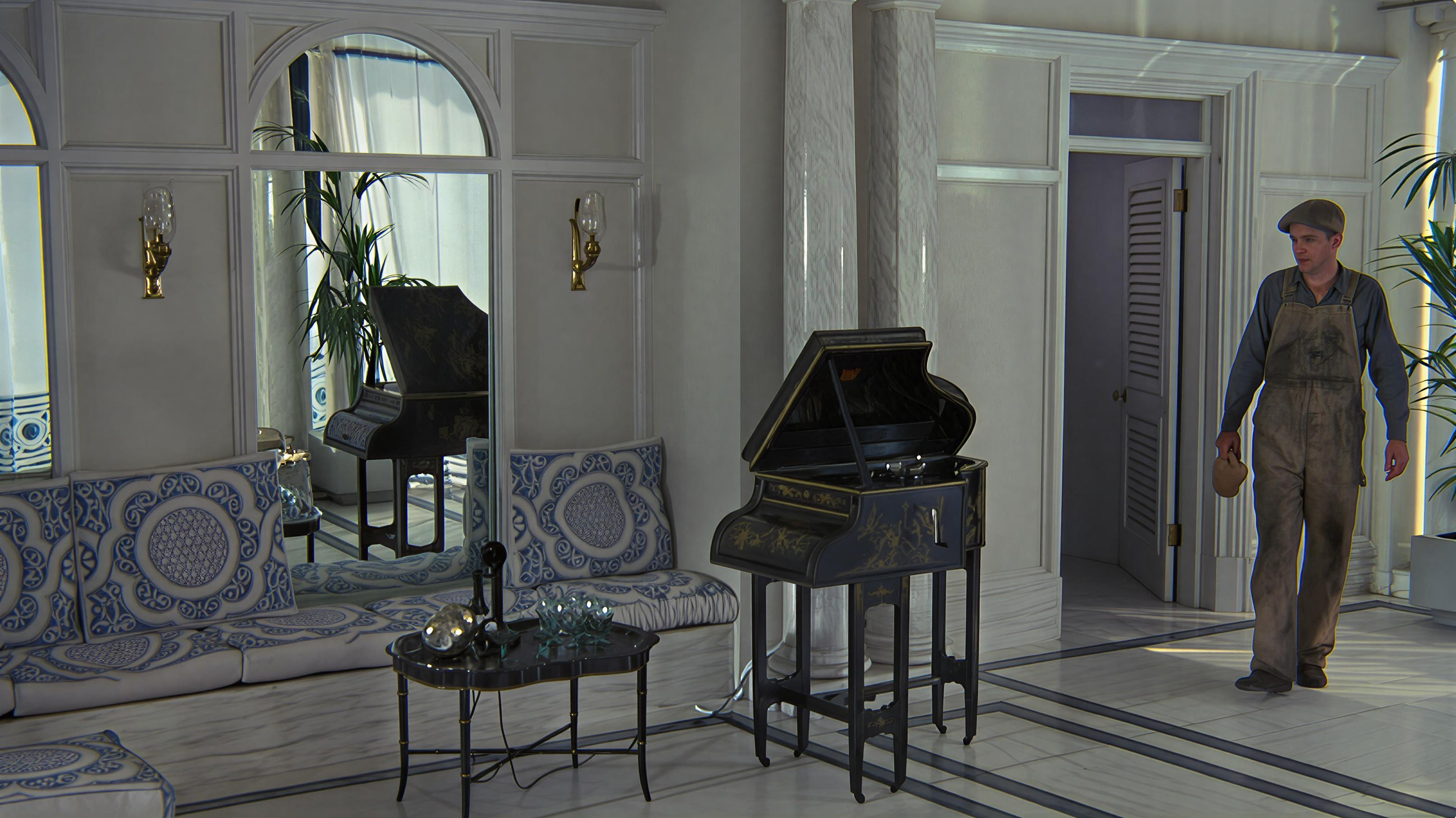 Towards the end of the 1974 film, Gatsby is relaxing by his pool and listening to one of those grand piano shaped "Operaphones".
