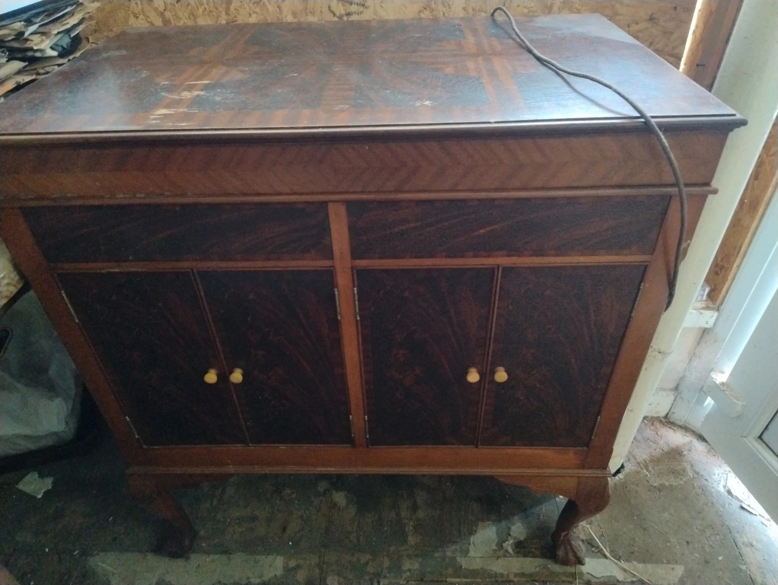 Exactly. Junk machine AND non-original tonearm AND tonearm the wrong way round causing record-destroying tracking AND some poor misguided owner has fitted a wooden tonearm rest to accommodate it in that orientation!!!