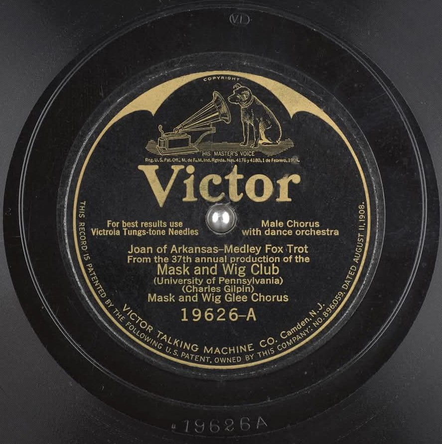 Victor must not have seen the importance of releasing its first electrically recorded record. "Joan of Arkansas, by the Mask and Wig Glee Chorus"? Wouldn't you think they would have chosen a title with more popular appeal to showcase their debut of the first electrically recorded release??