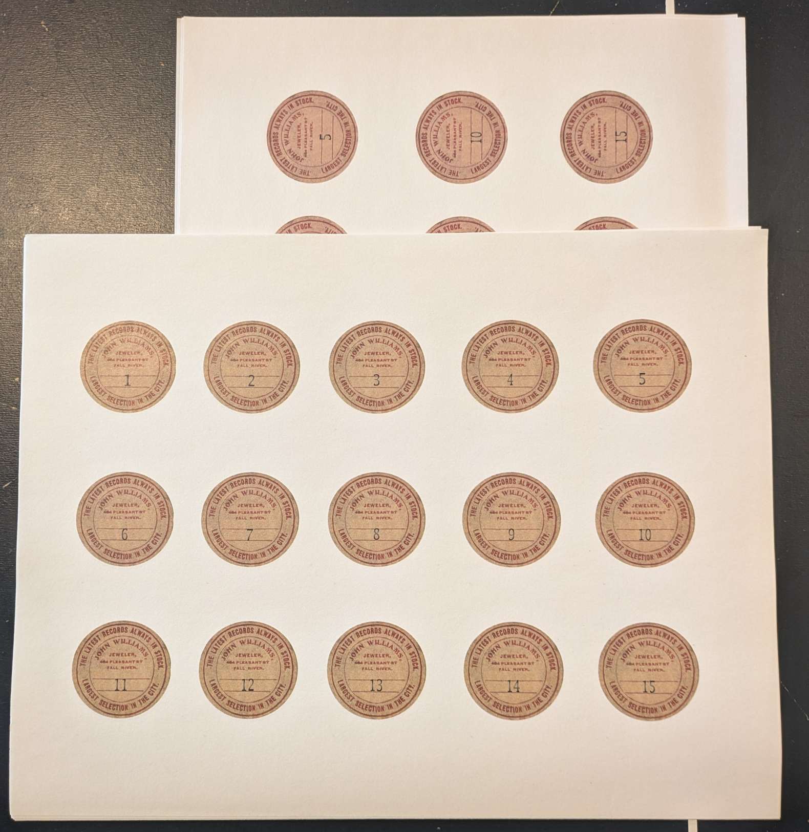 These paper labels really dress up a cabinet, especially with mismatched, or unnumbered pegs! One set is numbered from 1 - 135, the other from 1- 315. They can easily, and effectively be punched out of the paper with a cheap 1 ⅜" paper punch.