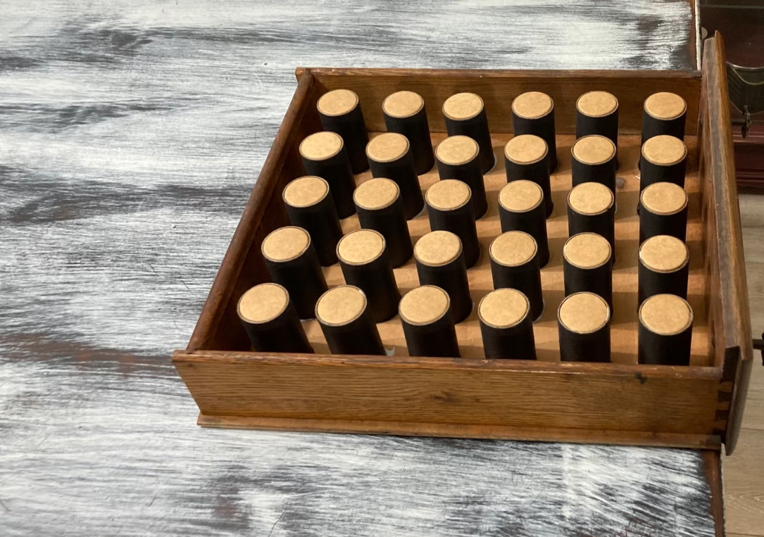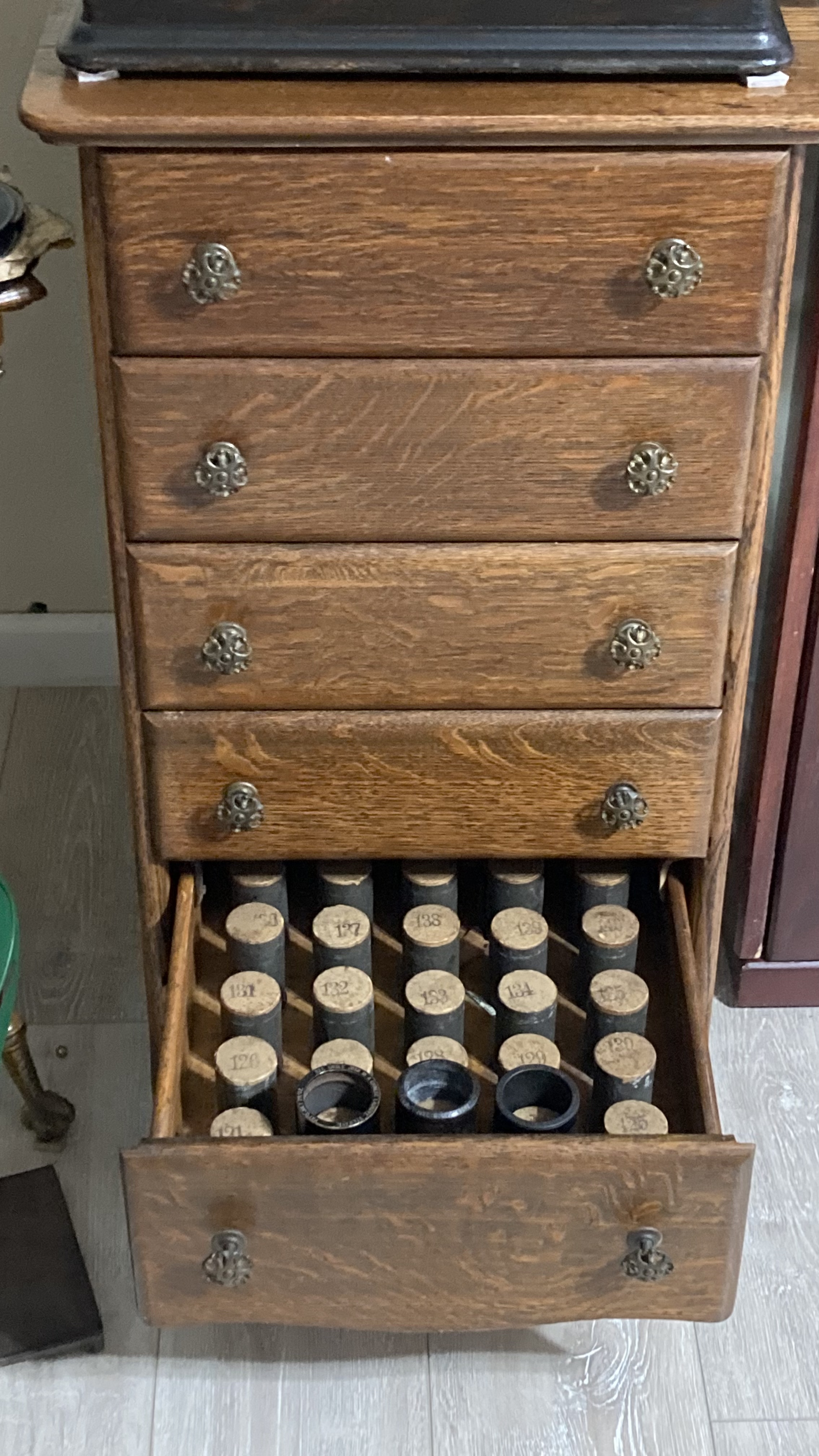 This cabinet has the original owner's labels, with the correct matching cylinders for many of them. It represents many years of building a collection.