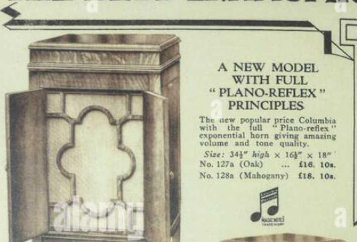 Does anybody have any information about Viva tonal Columbia No.132 model? I'd like to know what kind of horn and the front grill it has and whether it has record storage. I know it has Piano Reflex tone arm and horn. Thank you.