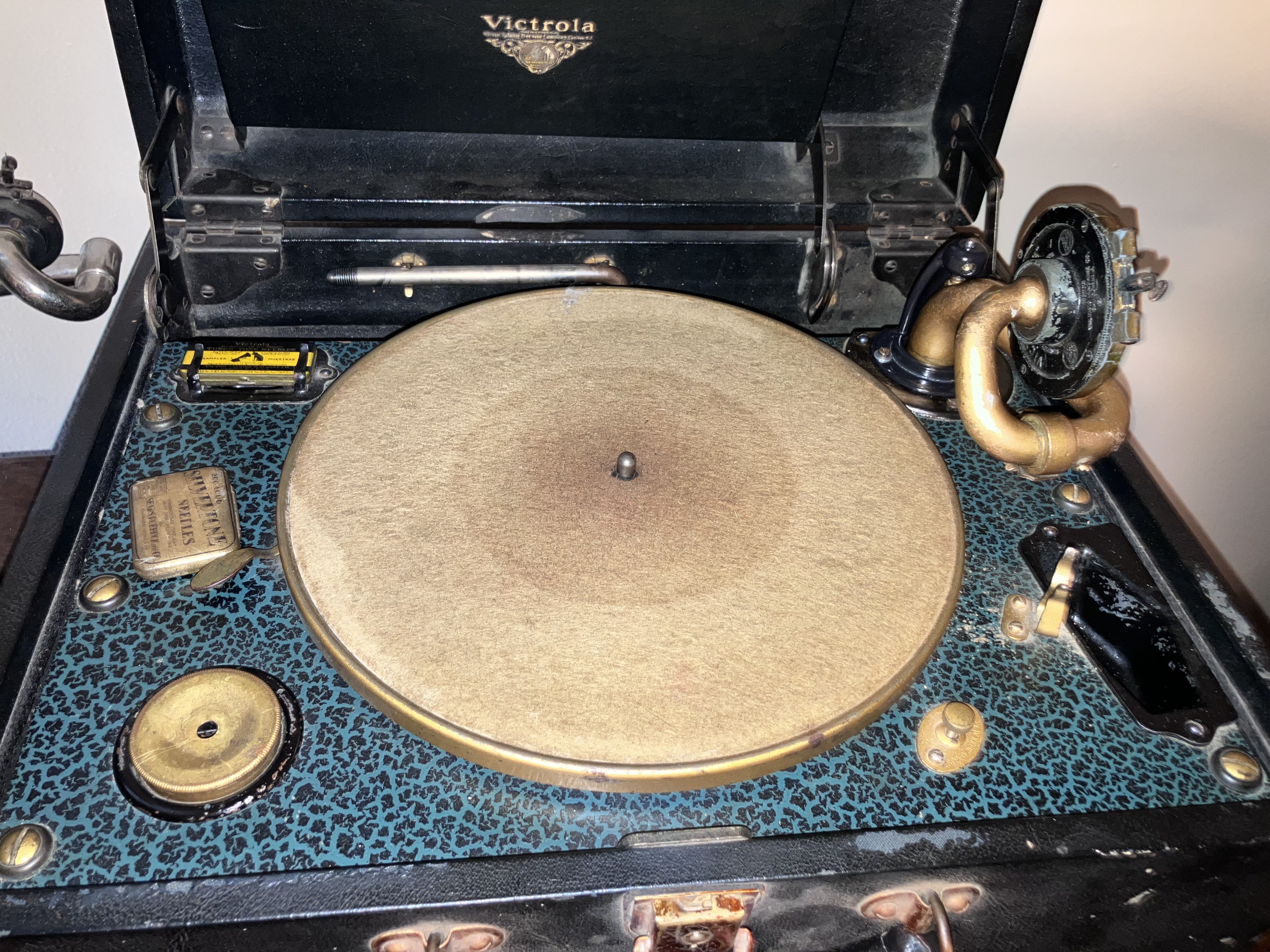 I assume so. Pot metal does not age well. Looking on eBay I see many pre-1925 tonearms but nothing for these. You’d think with a part so problematic in these portables there would be reproductions readily available...Vinrage_mania wrote:Mine is okay so far do they make a repro?? Never looked or asked bet all the originals are bad!