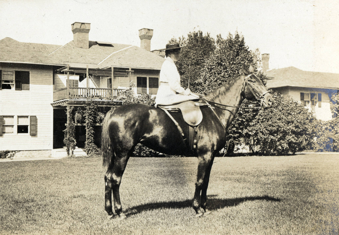 This all reminds me of a Victrola XVI I bought in October 1967. I wasn't foresighted enough to ask, but the antique dealer remarked that it had come from a mansion that stood a few hundred yards from the shop. "Herbert and Martha Wadsworth; you should look them up - they were interesting people." Indeed they were. I wrote an article on the machine and the family, and it appeared in the March 2018 issue of the APS magazine. Here's a picture of Martha astride one of her favorite horses on the lawn of the mansion ("Ashantee" as in "a shanty").