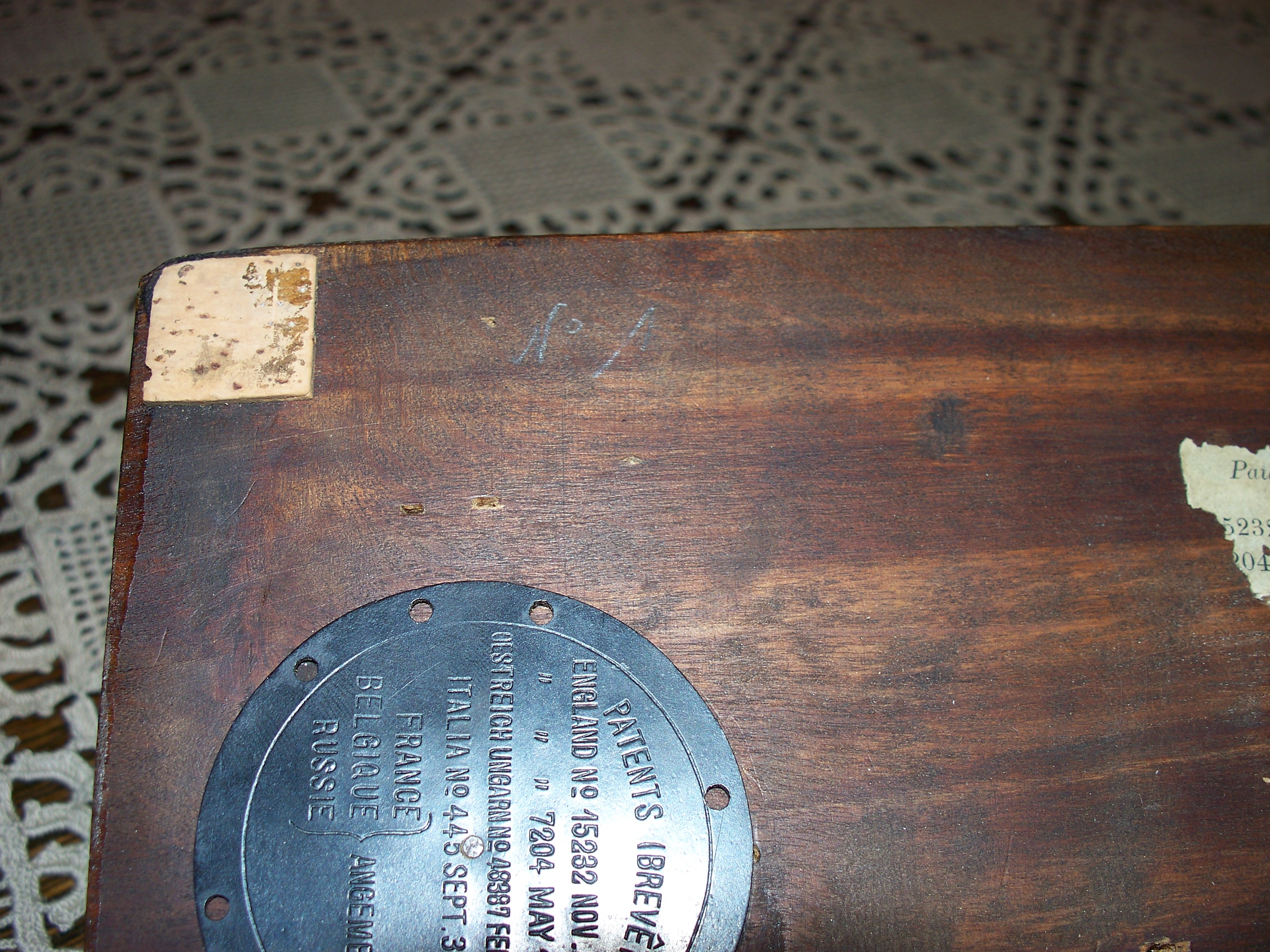 All gramophones shipped bore a sequential number, as required by the license agreement. Apparently initially only that, at least no model designations are known to have been used before 1893, with the exception of the "Weihnachtsausgabe" (Christmas issue) of November 1891. A German catalog of 1893, pictured in the December issue of The Antique Phonograph, listed gramophone designations (and illustrated two models), including 'No. E' as a novelty for children. A model 'No. 1', as written in modern handwriting (see the letter 'N') in lead pencil at the bottom of your gramophone, is not known to me so far.