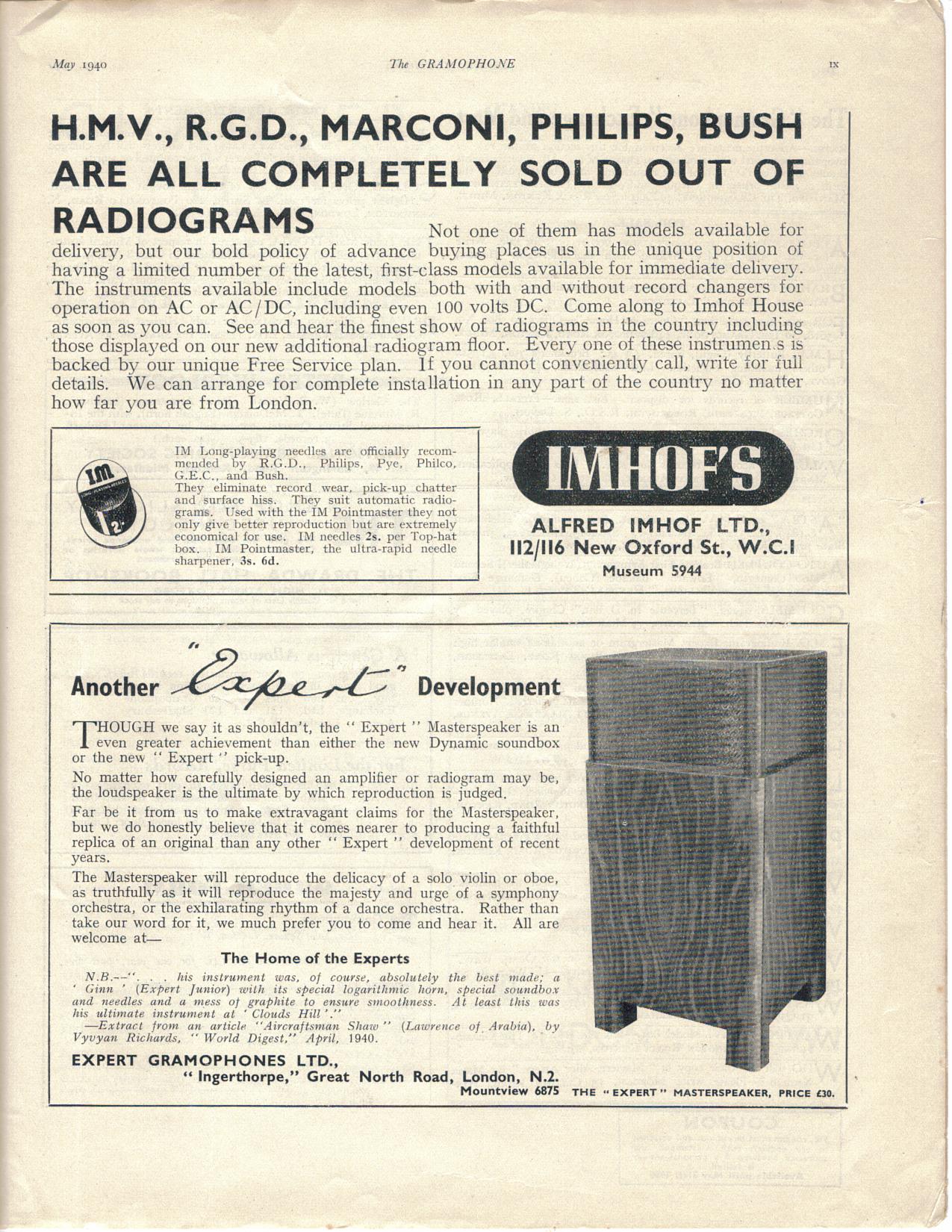 Here is an extract from The Gramophone in May 1940 showing the sort of speaker Ginn may have been referring to in his letter :