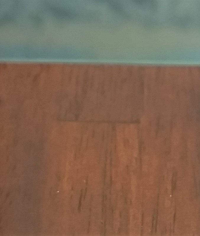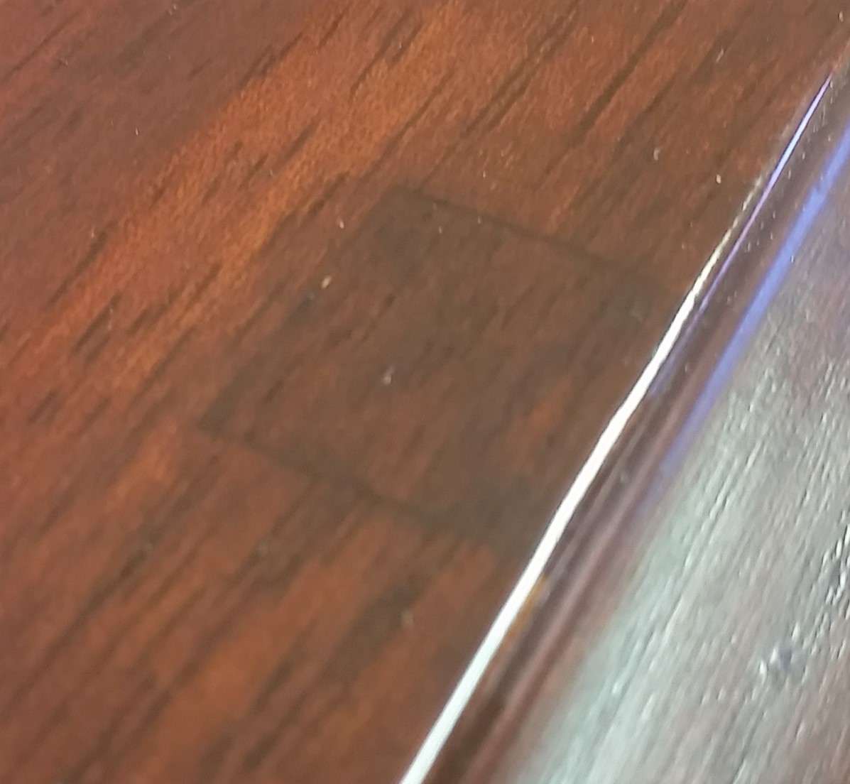 The veneer replacement can be seen if you really look for it. They are only ½" wide. Only 1 piece stained out darker than the rest.