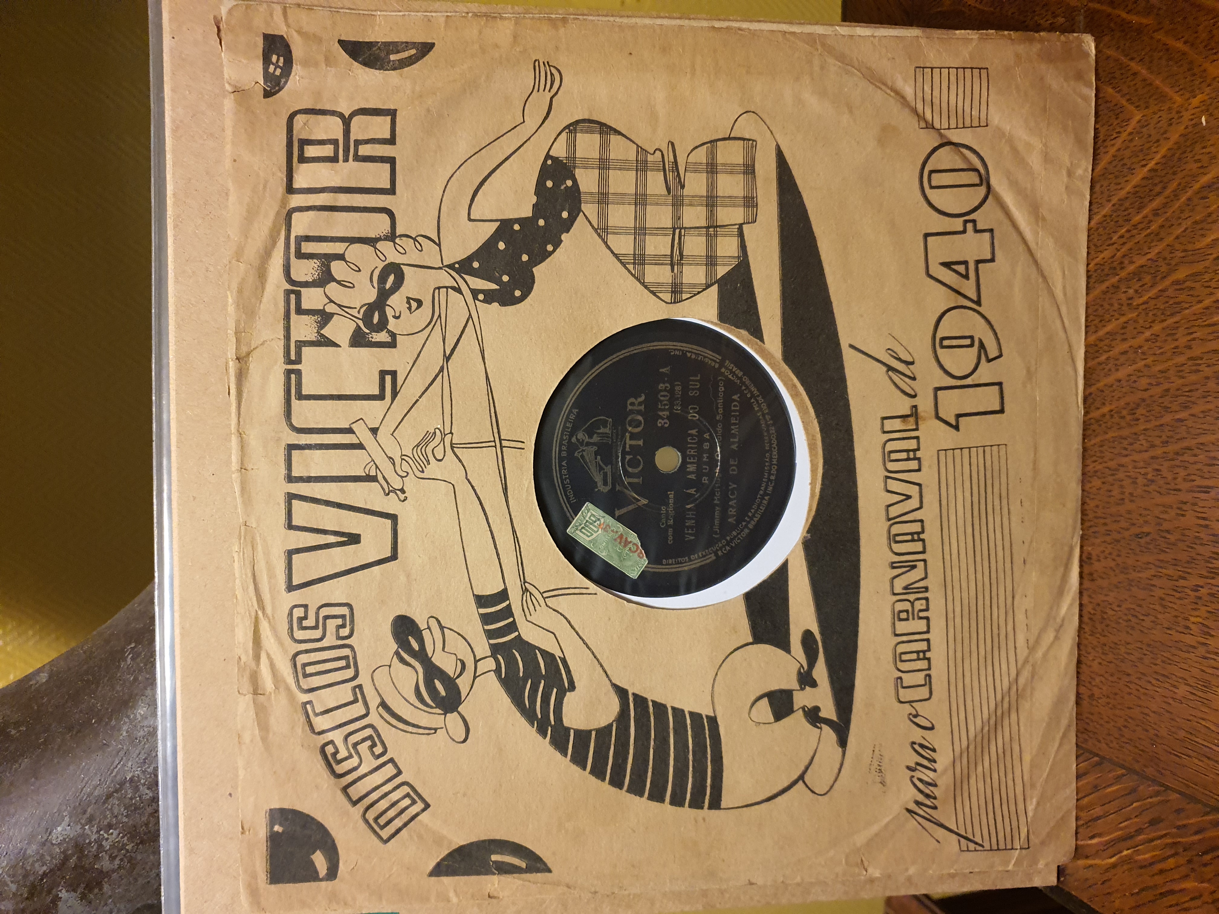 This is a Brazilian Victor cover made for the Rio carnival from 1940. Complete with the spray-and-sniff in the hand of the damsel. Click on the photo to see it straight