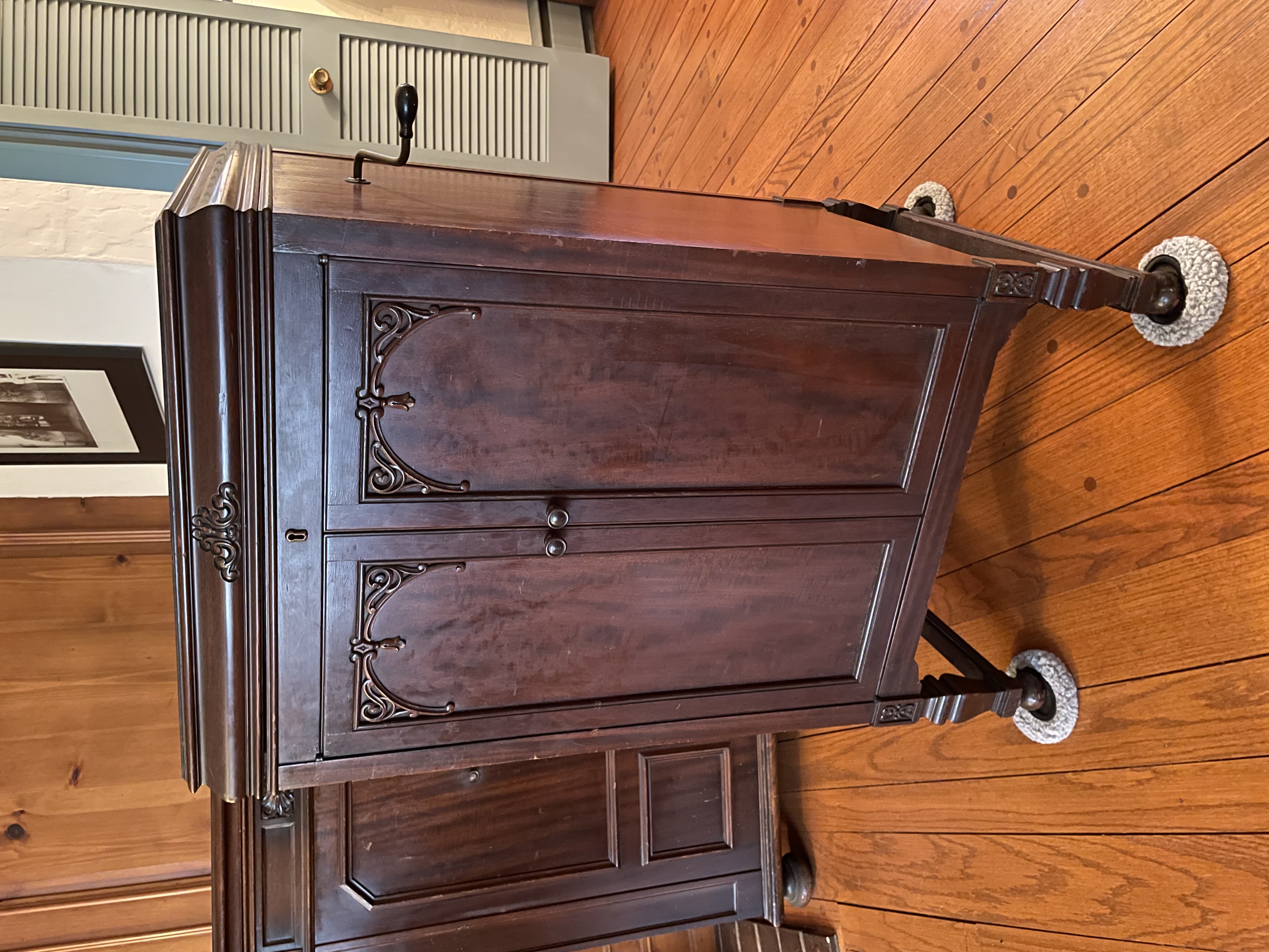 This 194 arrived safely today, and many thanks to the person who brought it to my attention. I too was surprised it sold for this price, I intended to bid a good deal more. The past few years have been difficult, but the phono gods recently have been offering some solace. This one even has a dealer plate, and serial number 56… this must be low, early. The last shot offers a size comparison with a credenza… it’s a shade smaller but the sound, blown away.