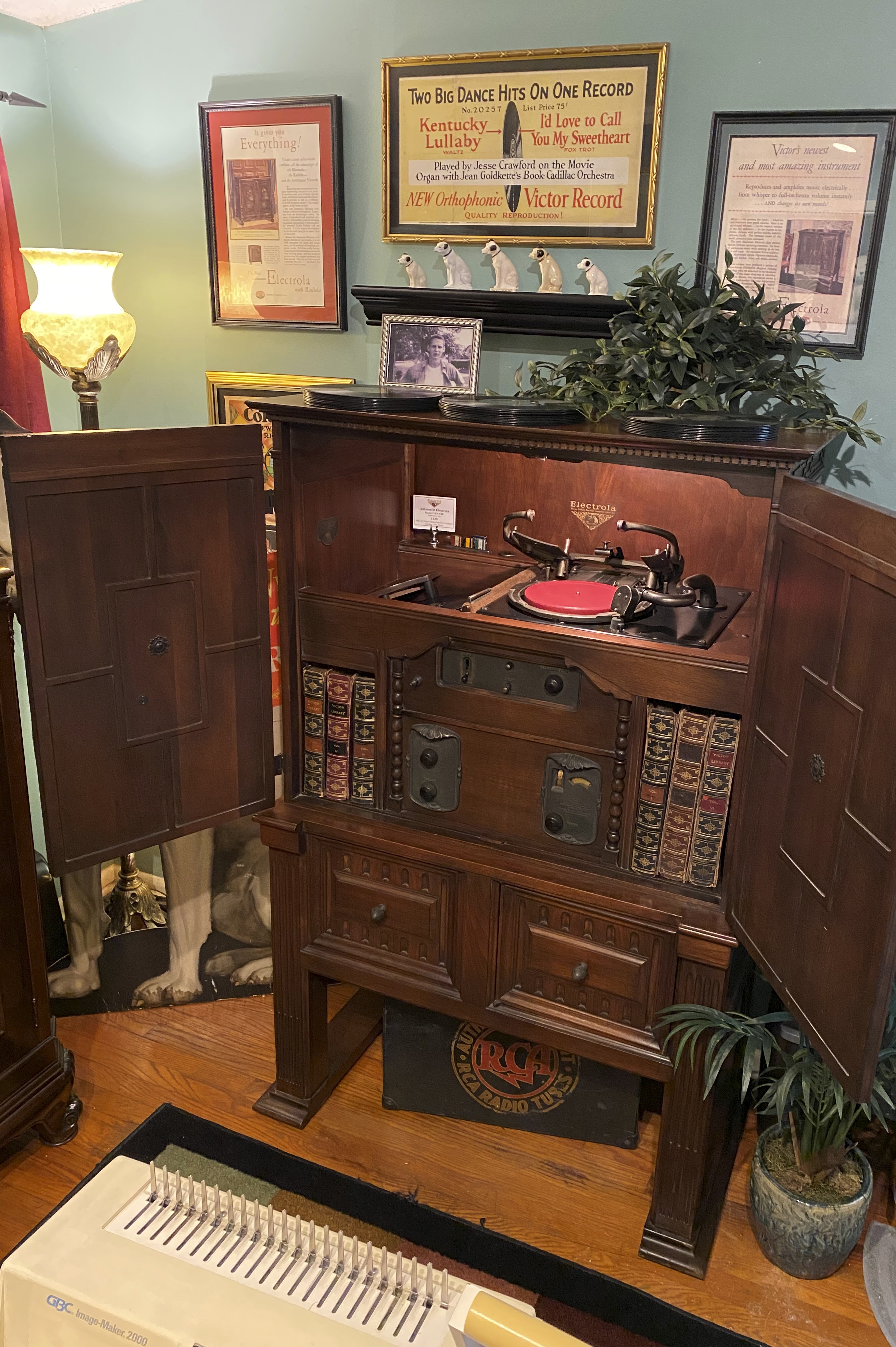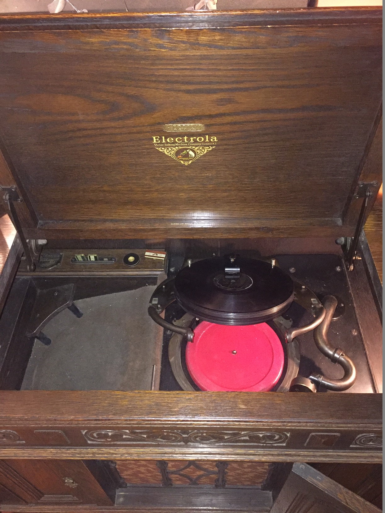 A beautiful collection of Electrolas. I’ve always loved the original coordinating red-orange grille cloth on the 10-69. The 10-69 Electrola is a real performer and replaced the 10-51 automatic in the 1928 product line. It left Victor with about fifty-two unsold 10-51’s and they had to cut the price to move them.