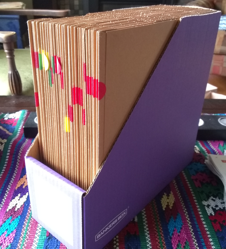 So far, I love the Bankers Boxes. They hold 30+/- disks depending on disk and sleeve thicknesses. They stay upright on shelves and are easily handled. I am hopeful that this is THE solution.