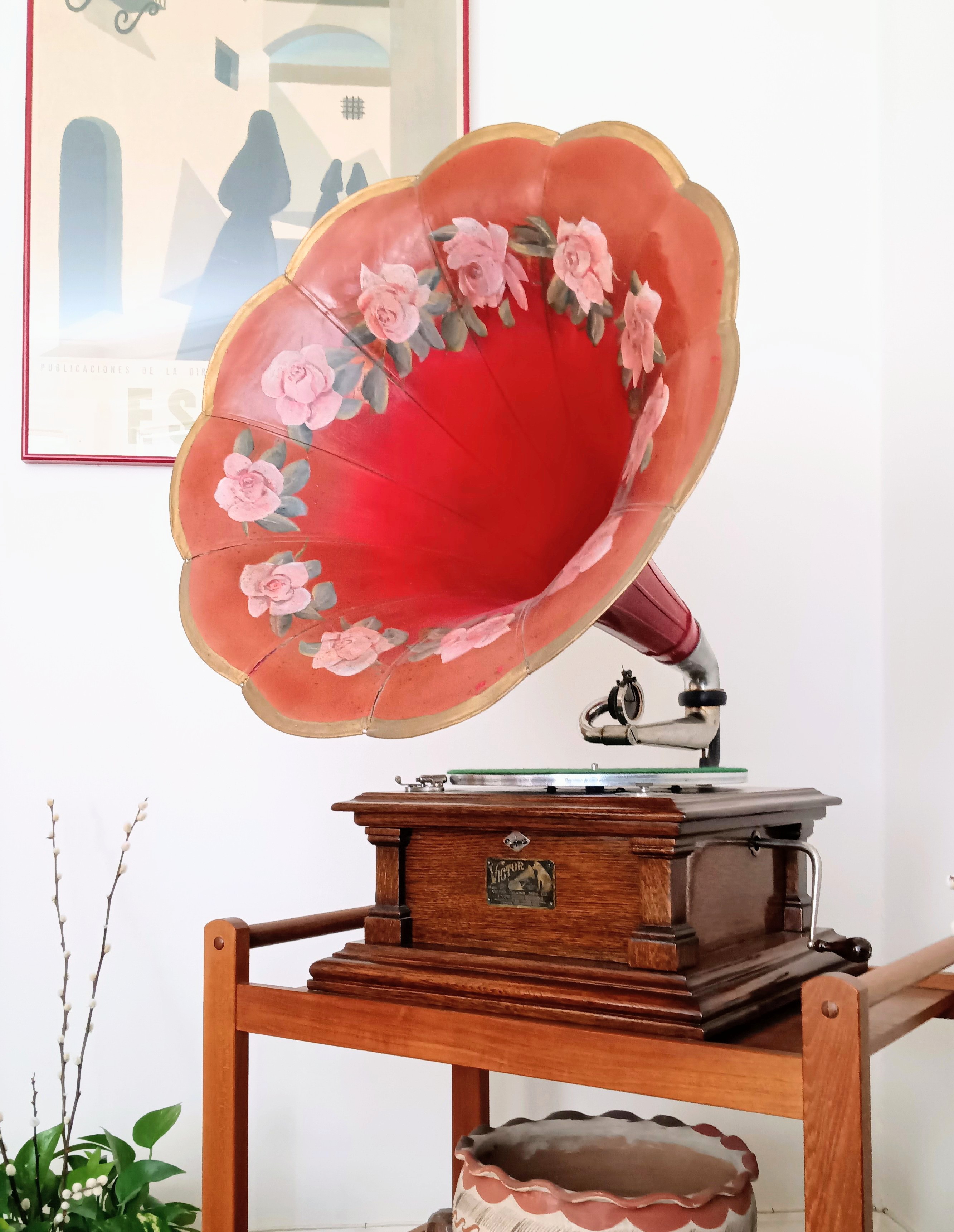 When I received it from the former owner--the granddaughter of the original owner--some 38 years ago, it has been badly damaged. (The granddaughter's former "boyfriend," call him "Bruno," had picked up the Victor V and thrown it against a wall! Fortunately, the horn was not attached at the time.)