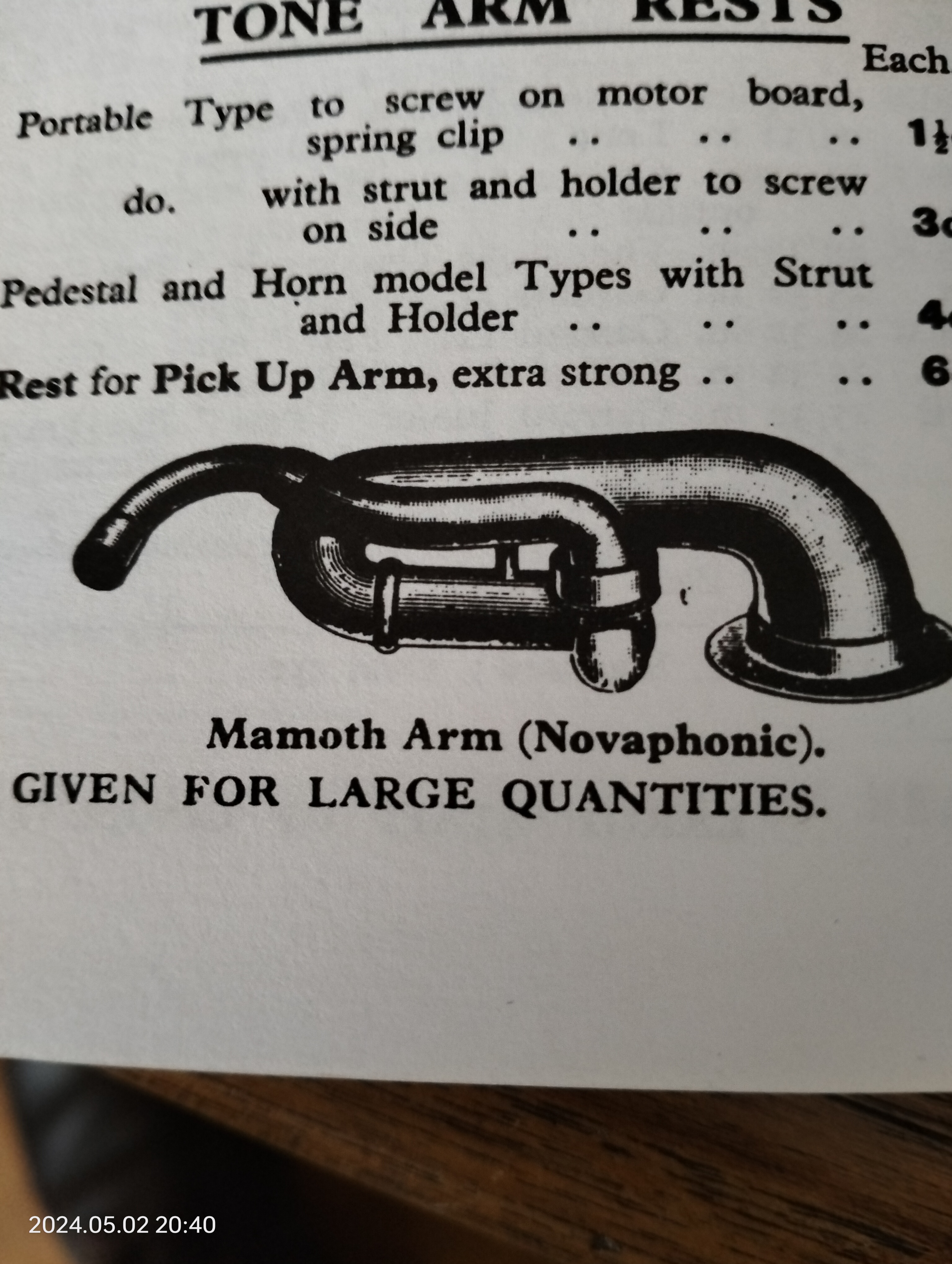 I am attaching a photo of four tone-arms from 'Home Mechanic magazine, c. 1931, which shows the normal Gilbert bugle, second from left.