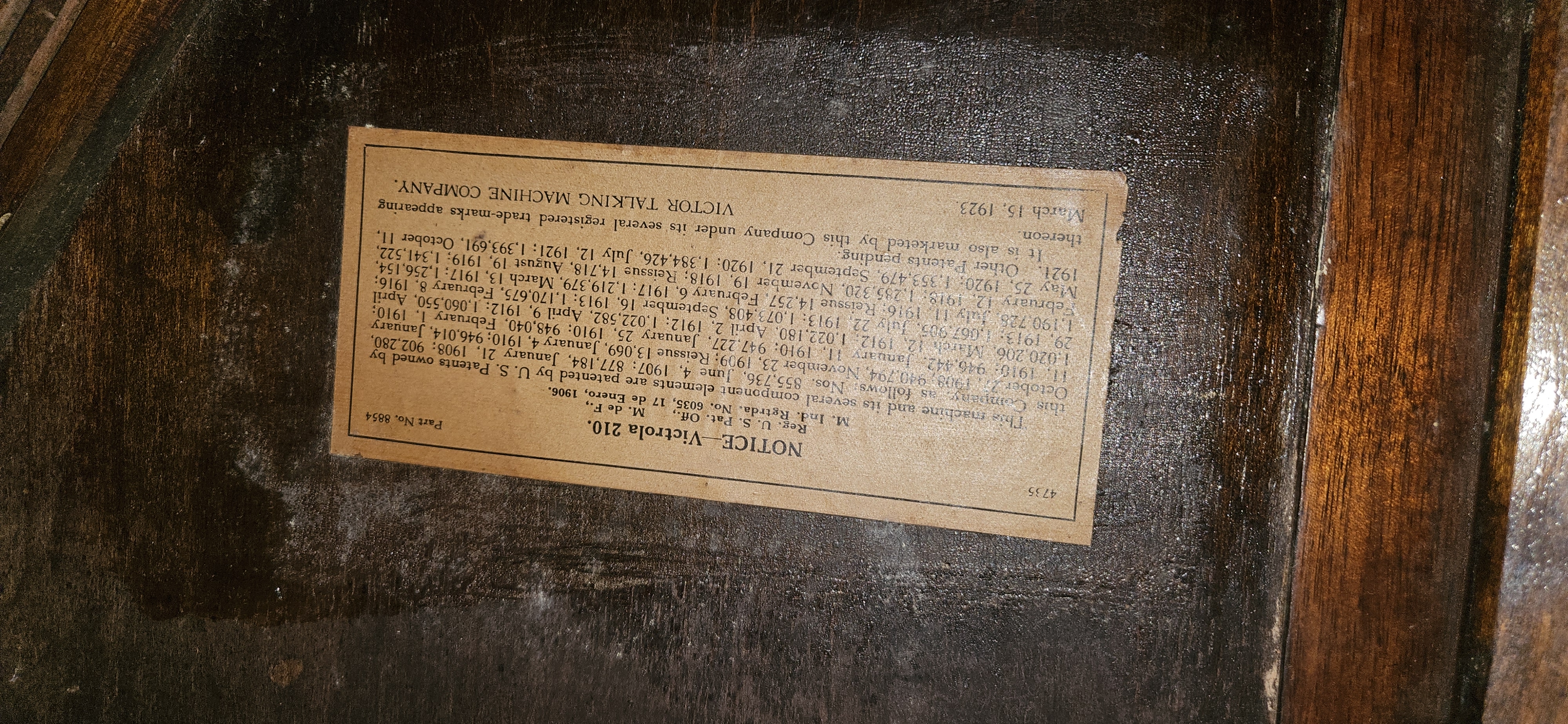 Your Victrola actually dates from the early to mid 1920s. There's a serial number dating guide for your model on this page, which also provides some excellent information about your Victrola -- http://www.victor-victrola.com/210.htm