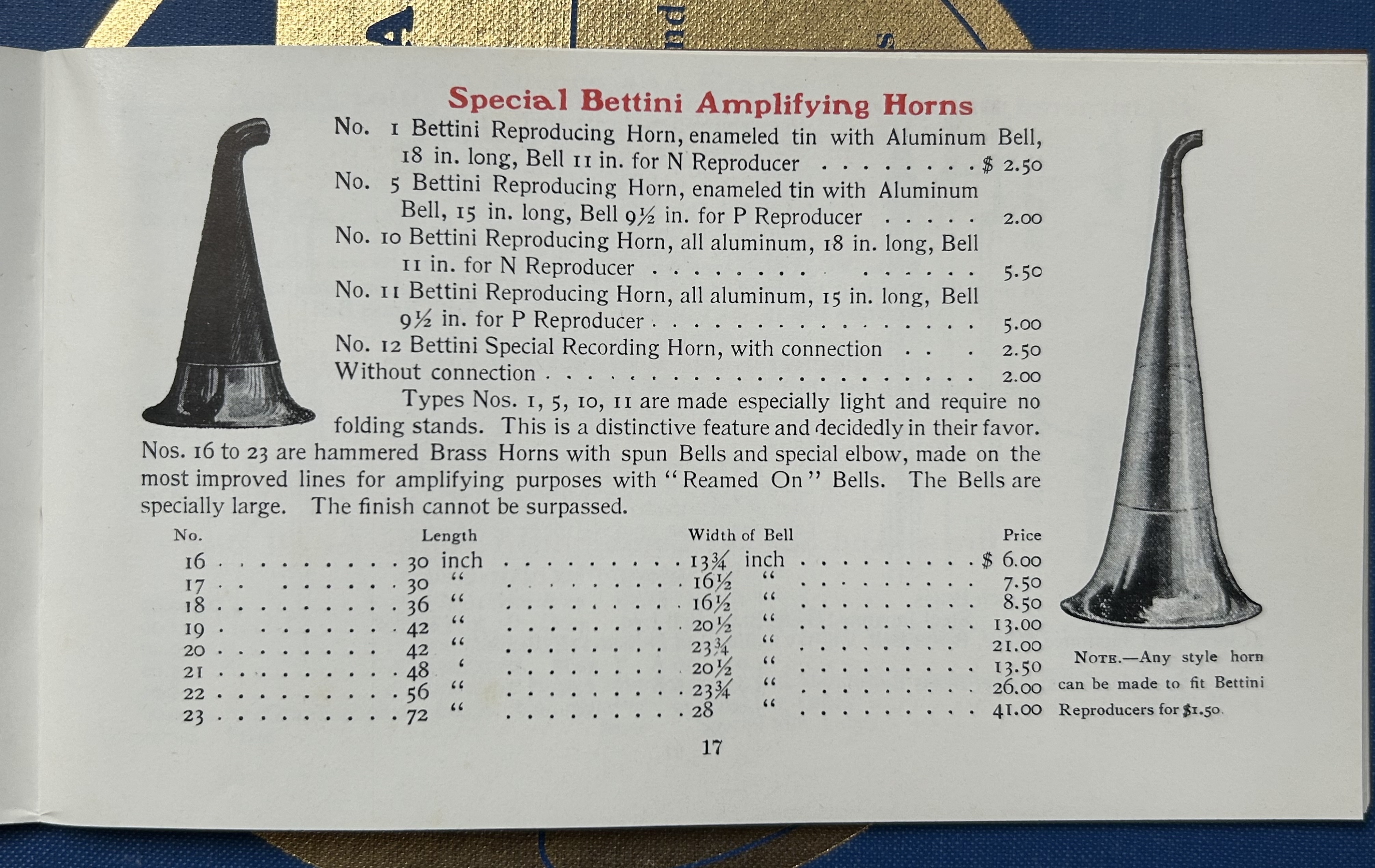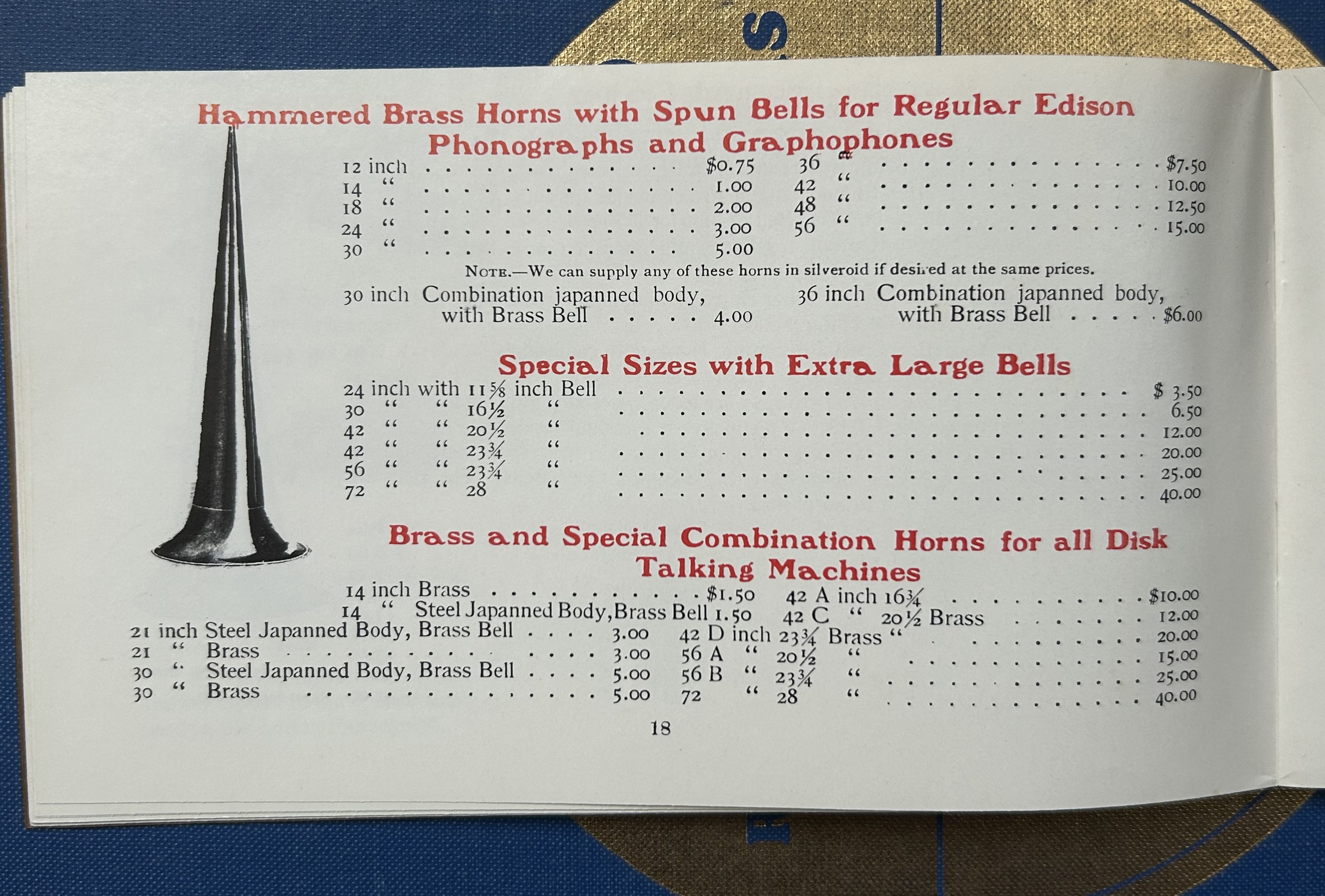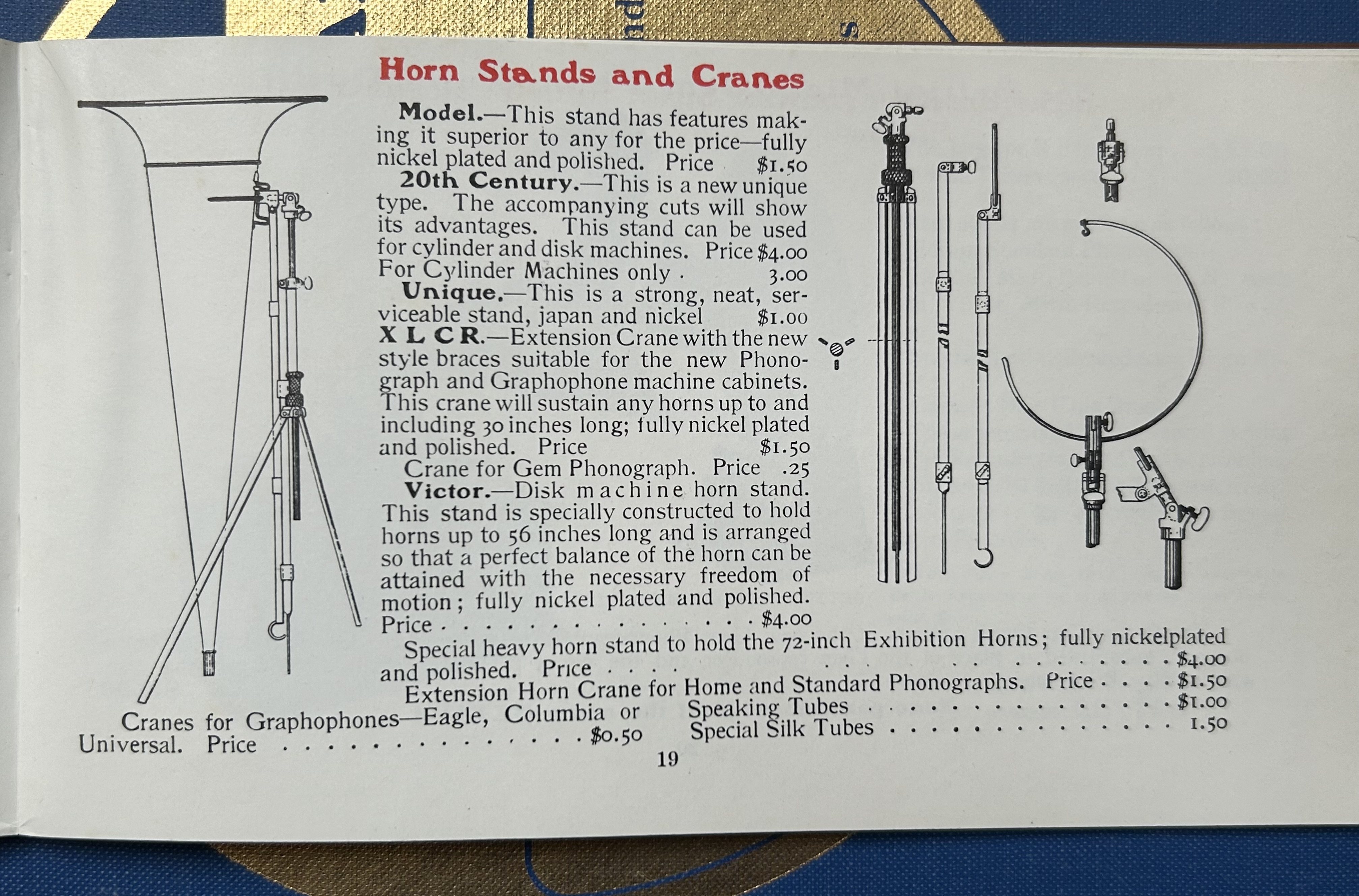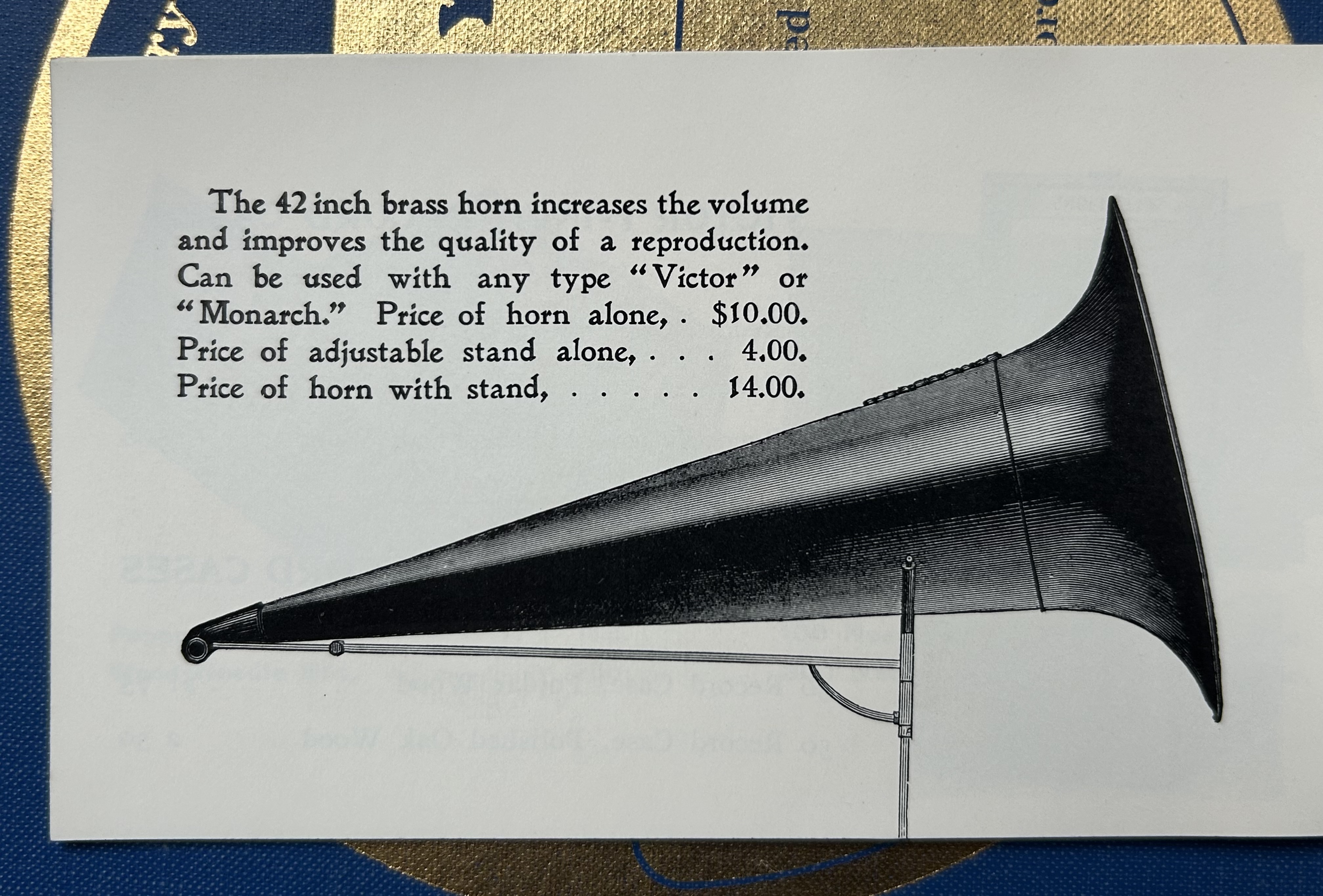 Tom, Thanks for sharing the catalog images. Great reference material. I have been looking for the floor stand for the 42" horns. I have and all brass one and a brass bell one.